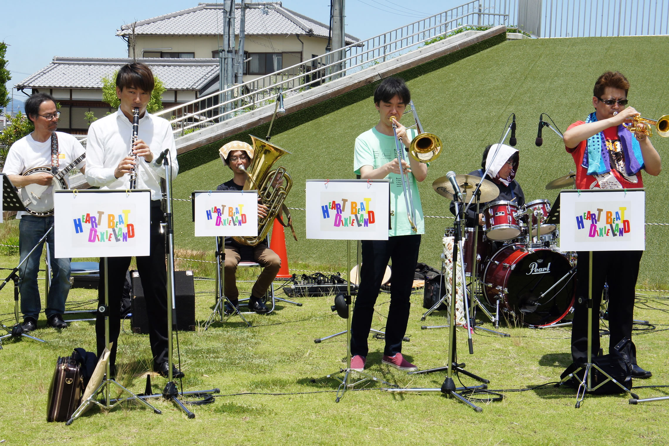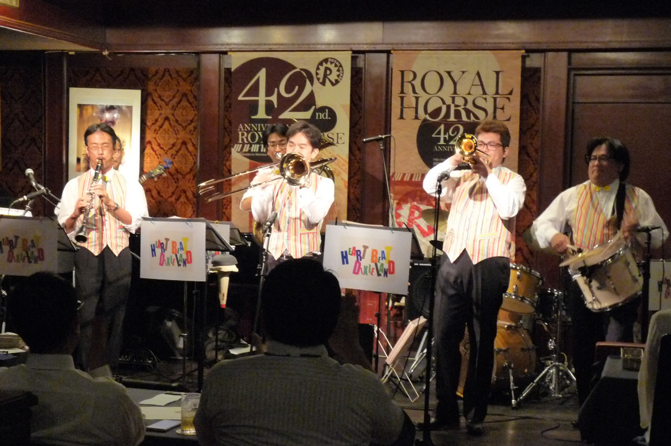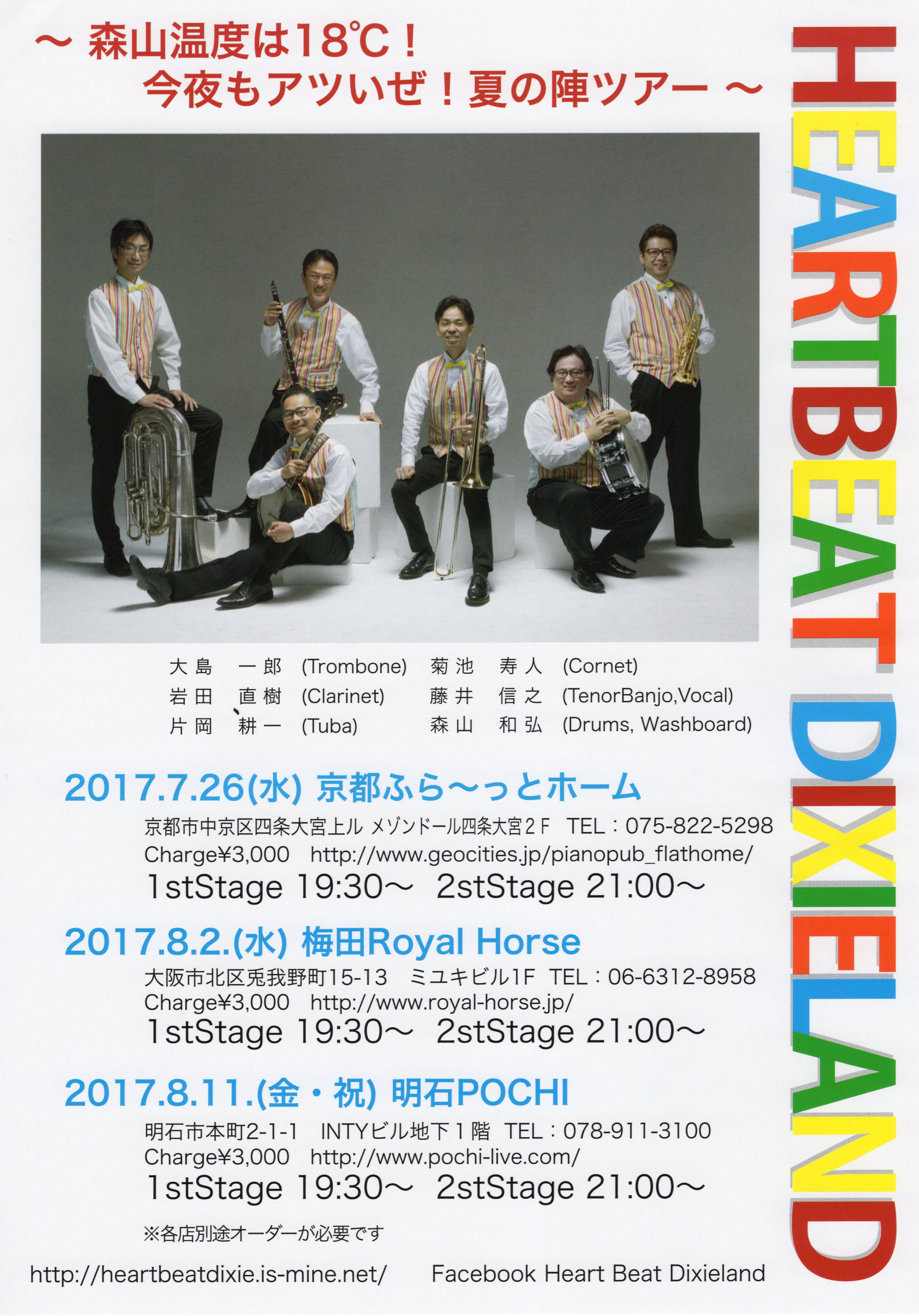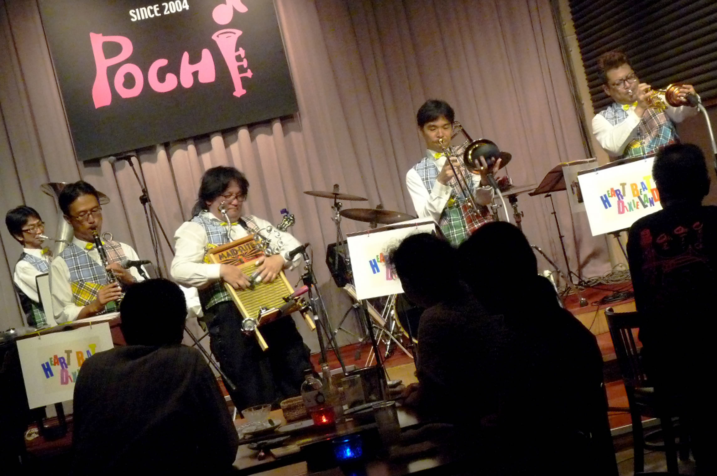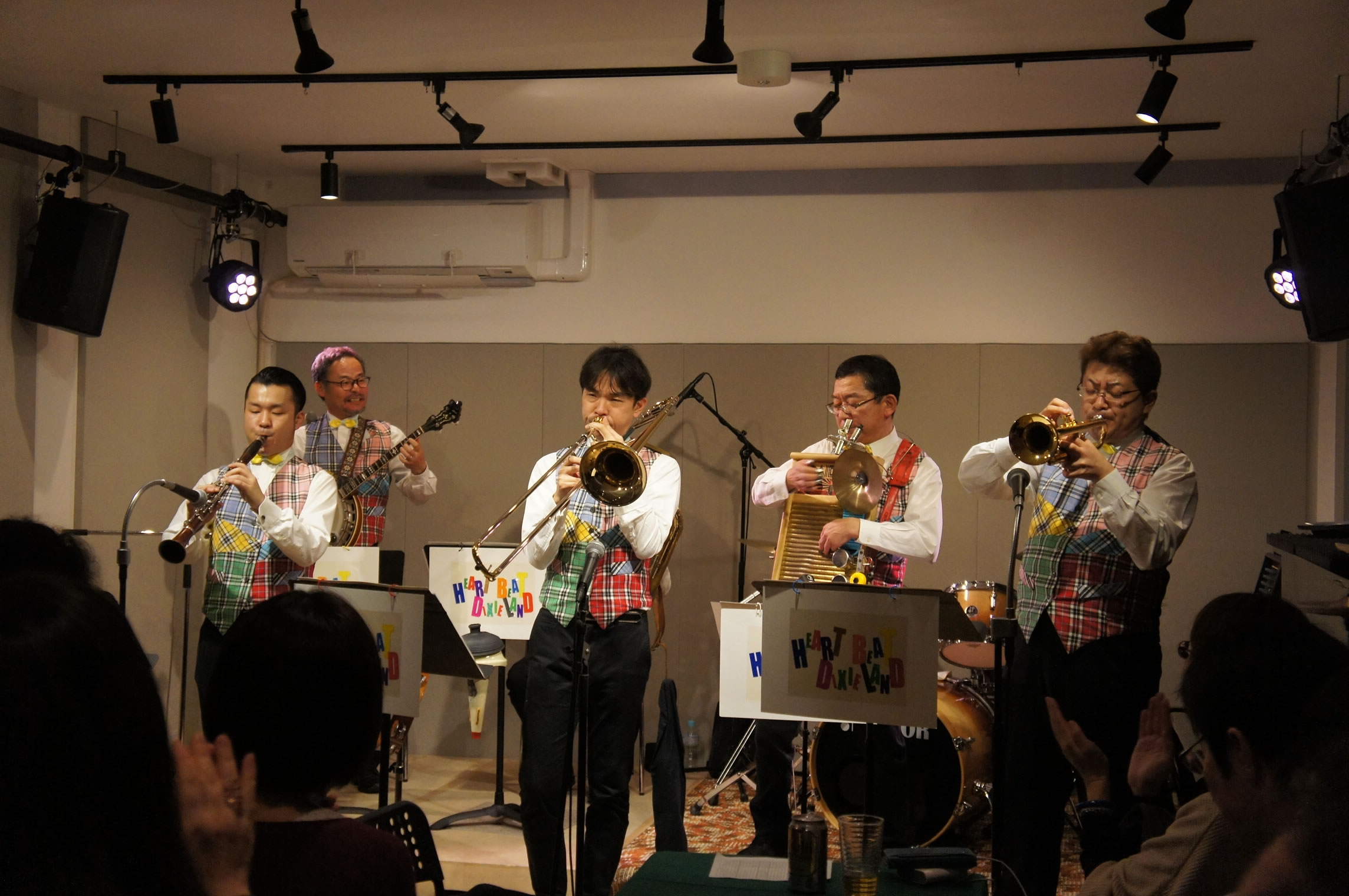 HEART BEAT DIXIELAND 大島一郎(Tb ) 菊池寿人(Cor)岩田直樹(Cl) 藤井信之(Tenor Banjo / Vo) 片岡耕一(Tuba) 森山和弘(Dr / Washboard)