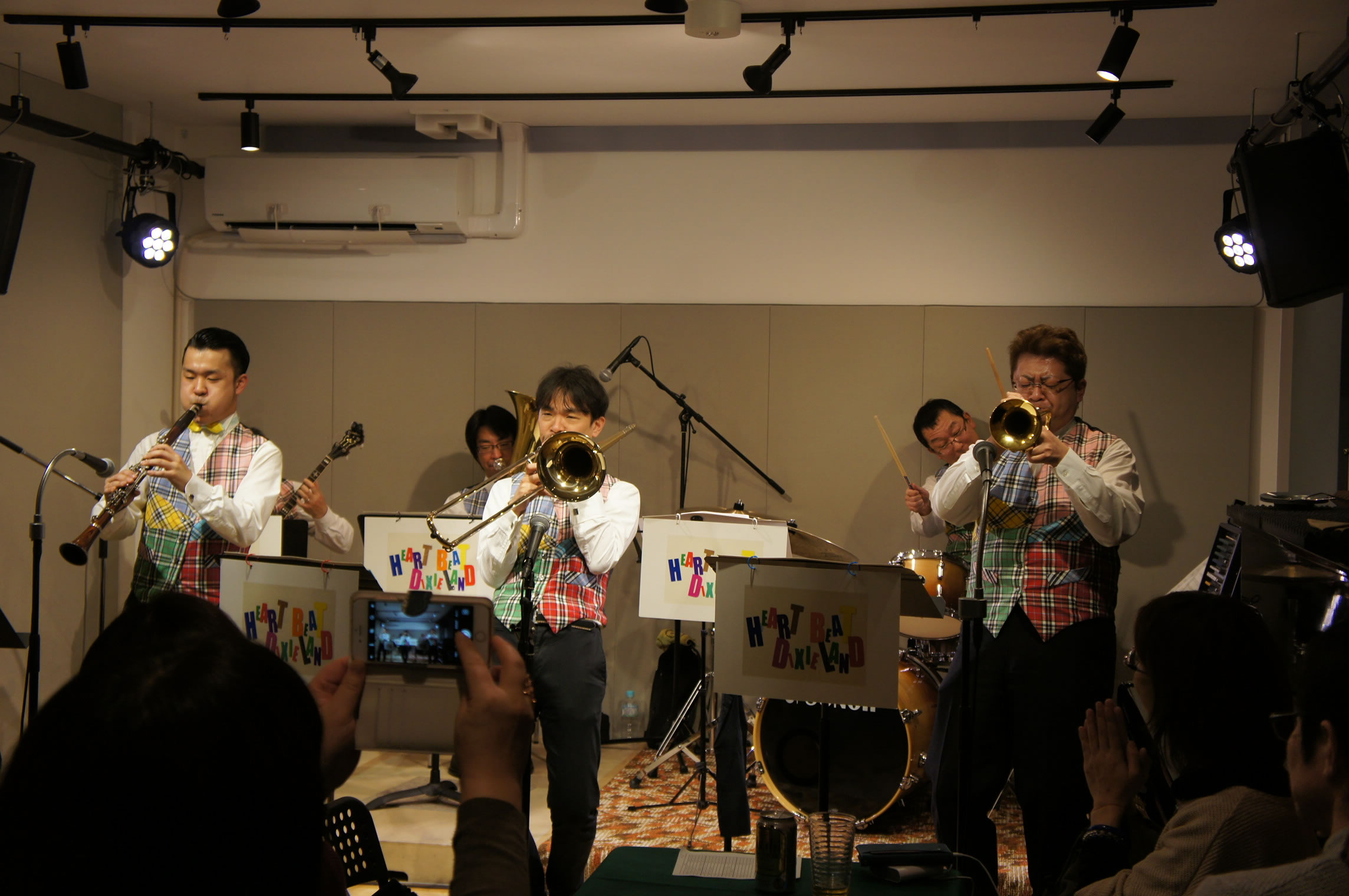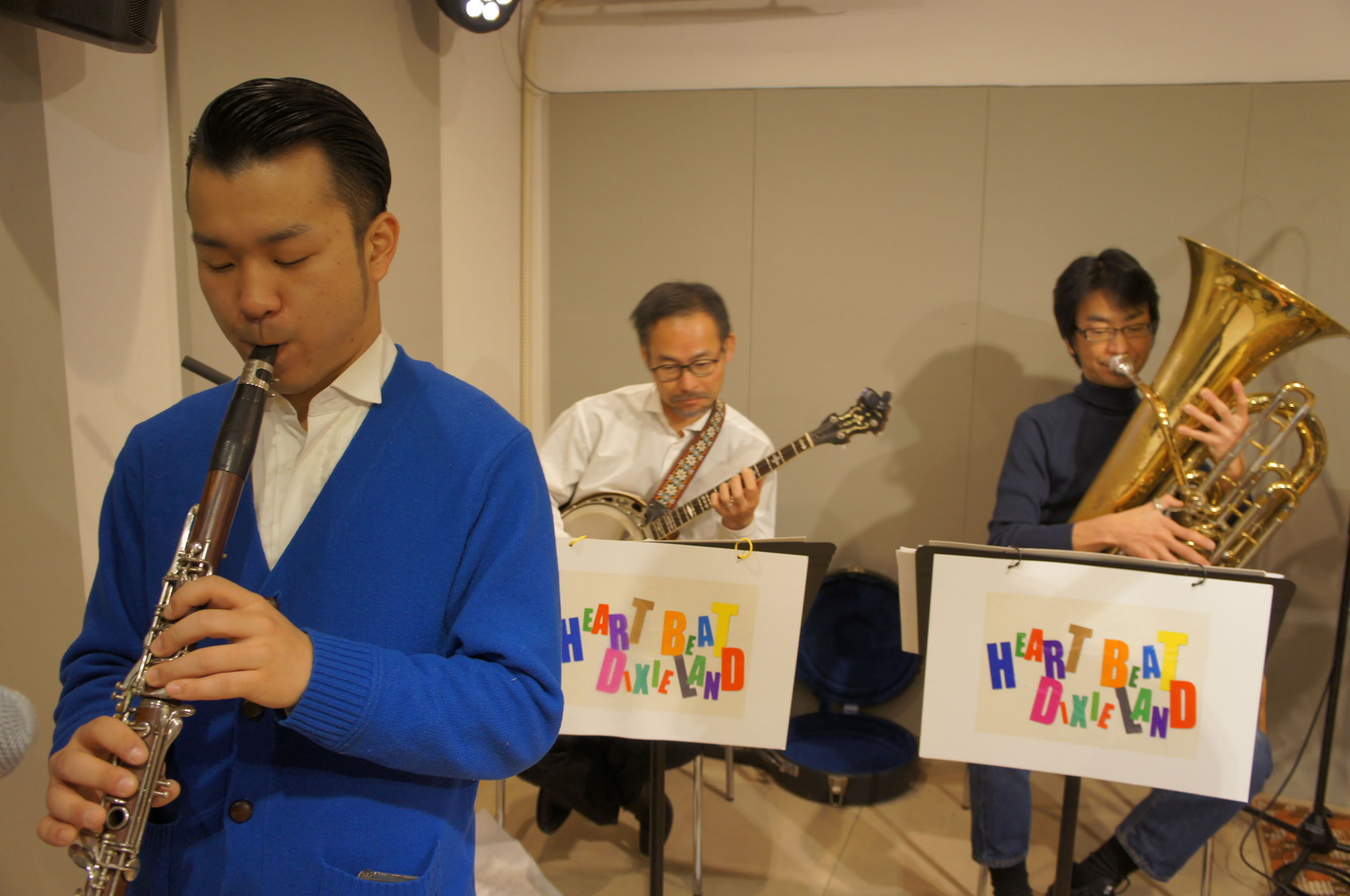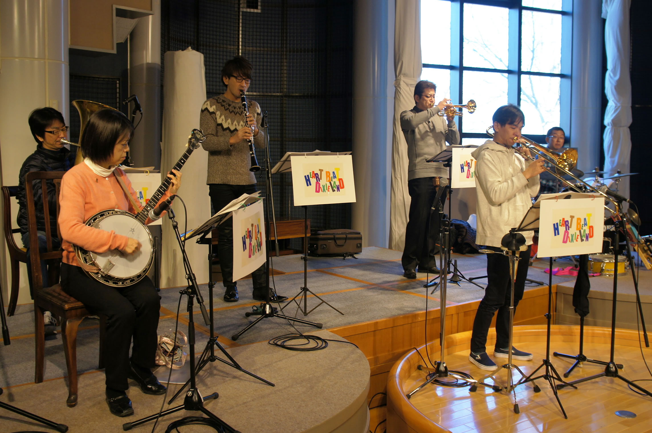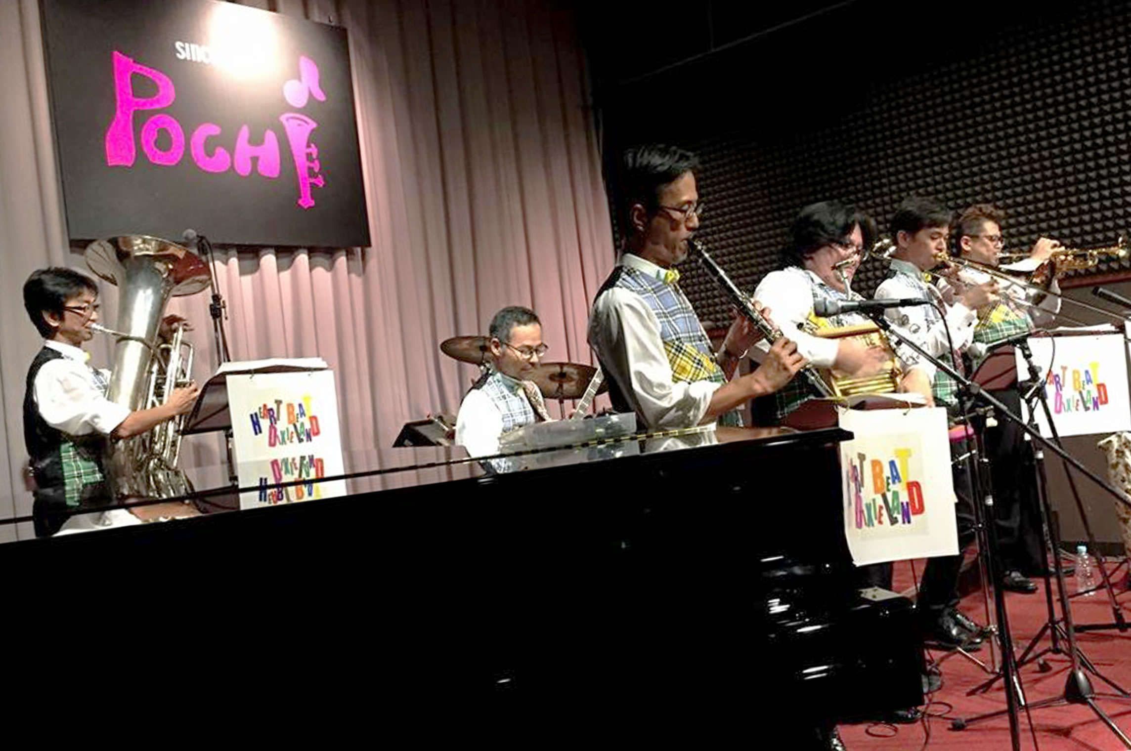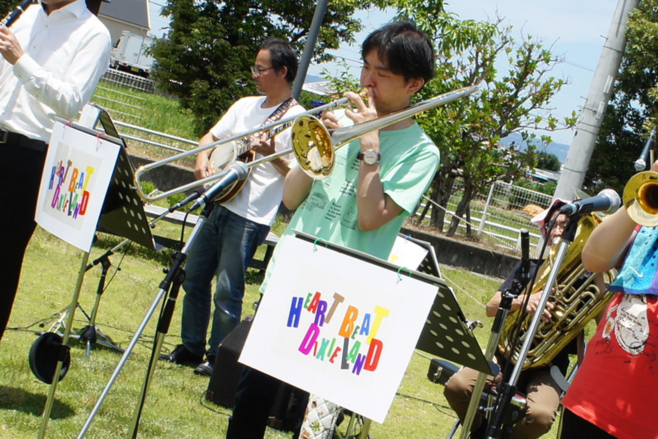 HEART BEAT DIXIELAND 大島一郎(Tb ) 菊池寿人(Cor)岩田直樹(Cl) 藤井信之(Tenor Banjo / Vo) 片岡耕一(Tuba) 森山和弘(Dr / Washboard)