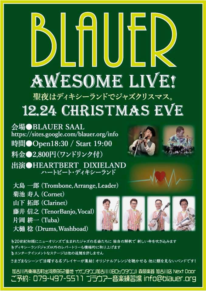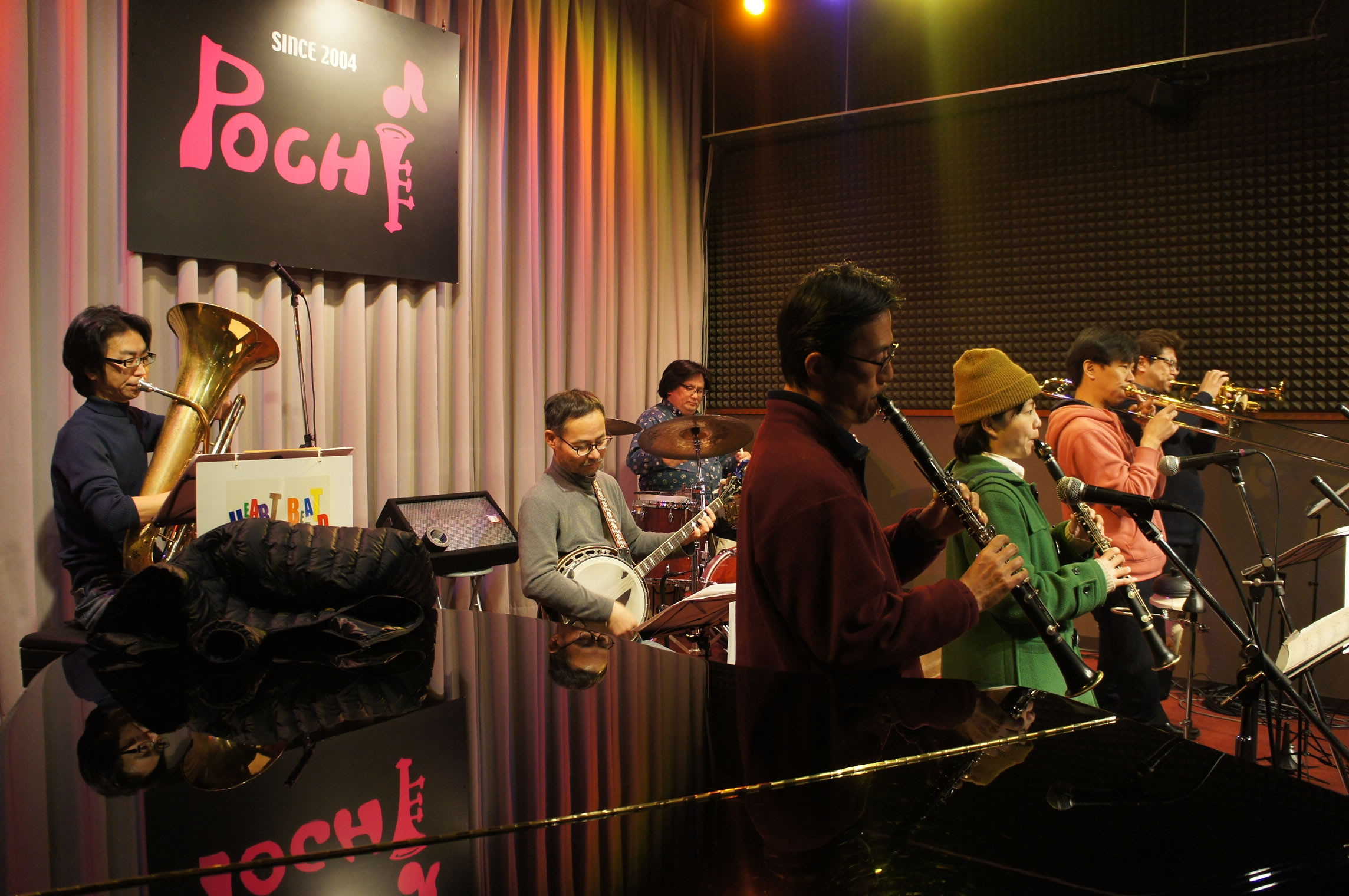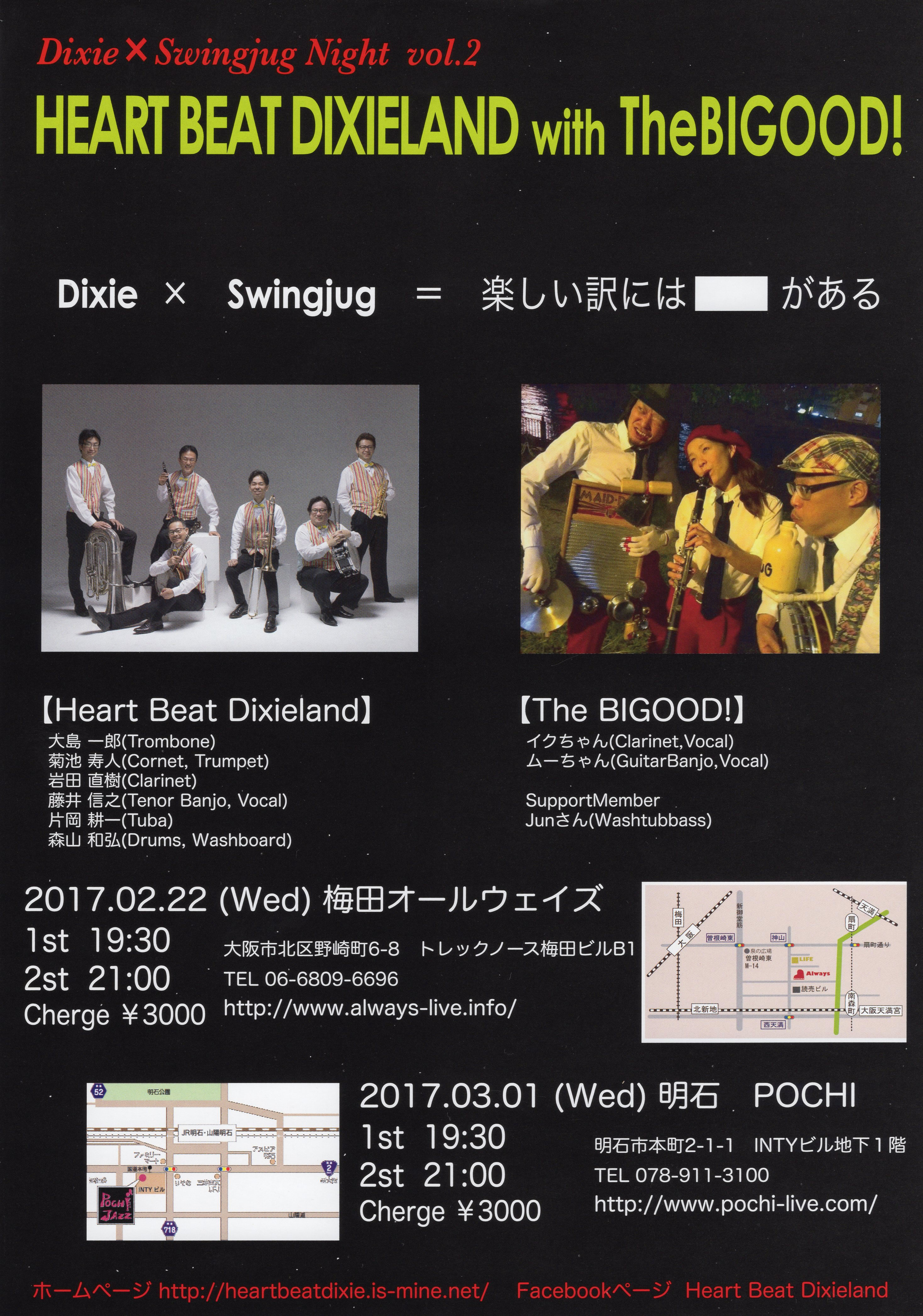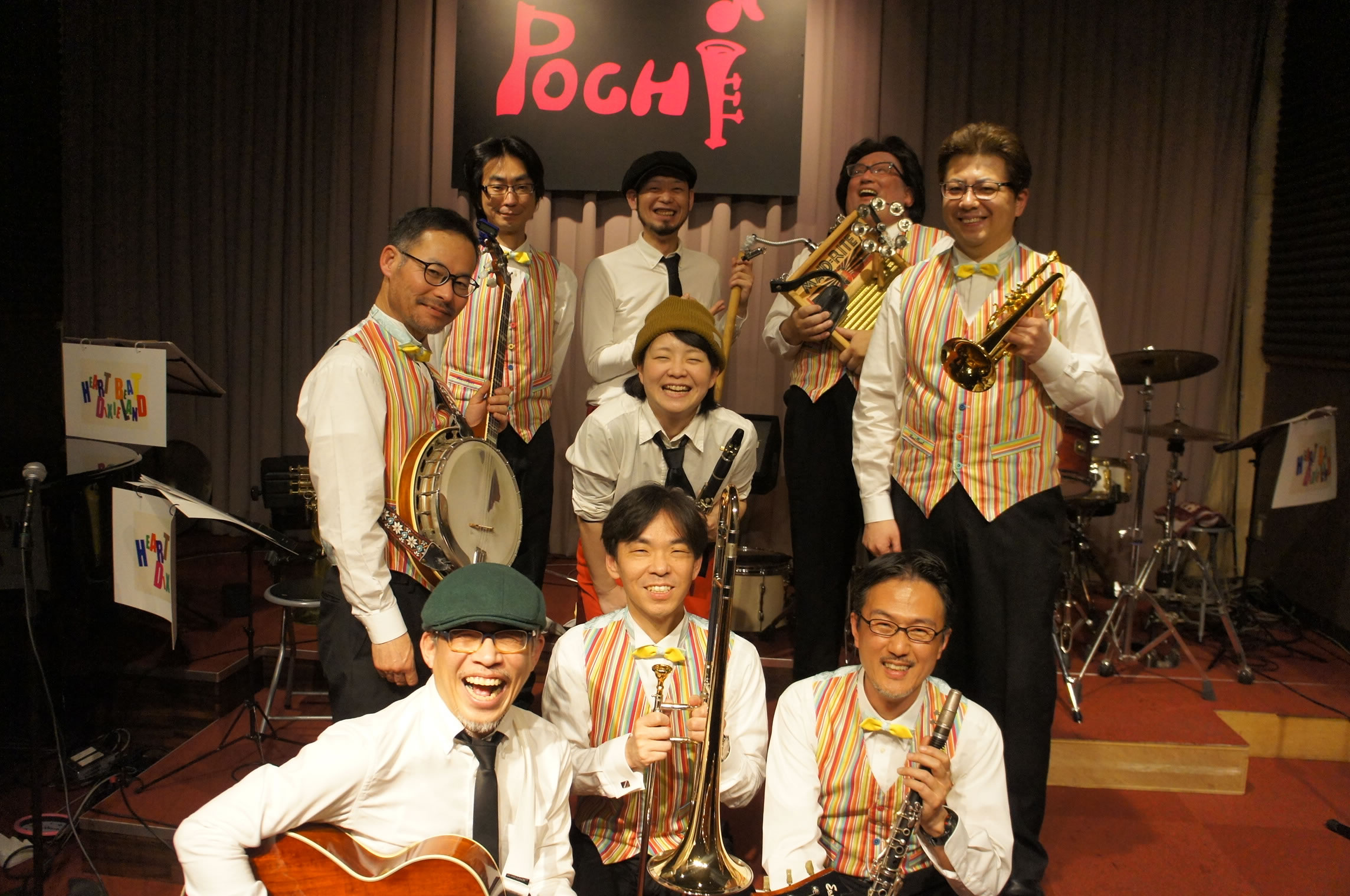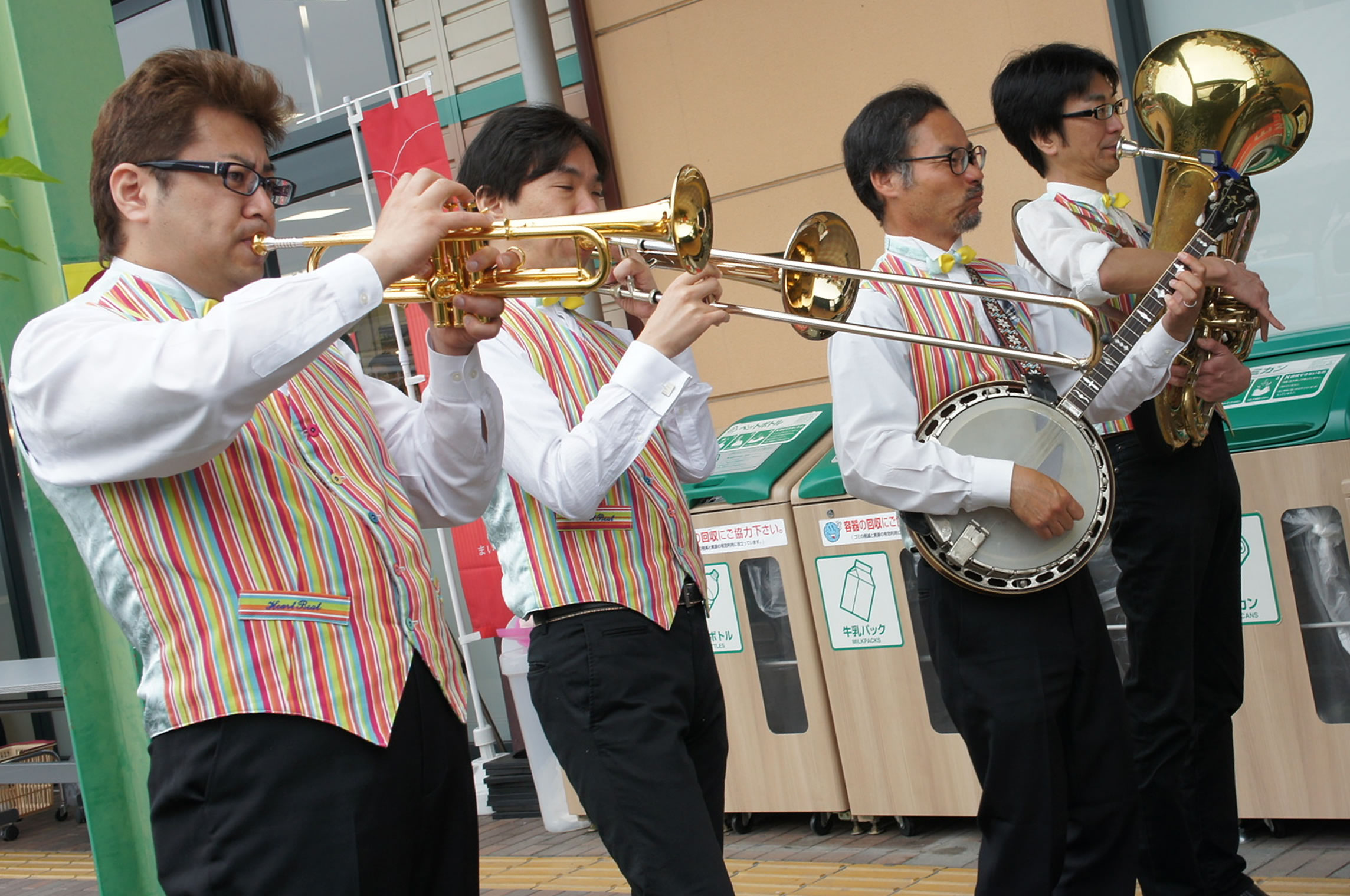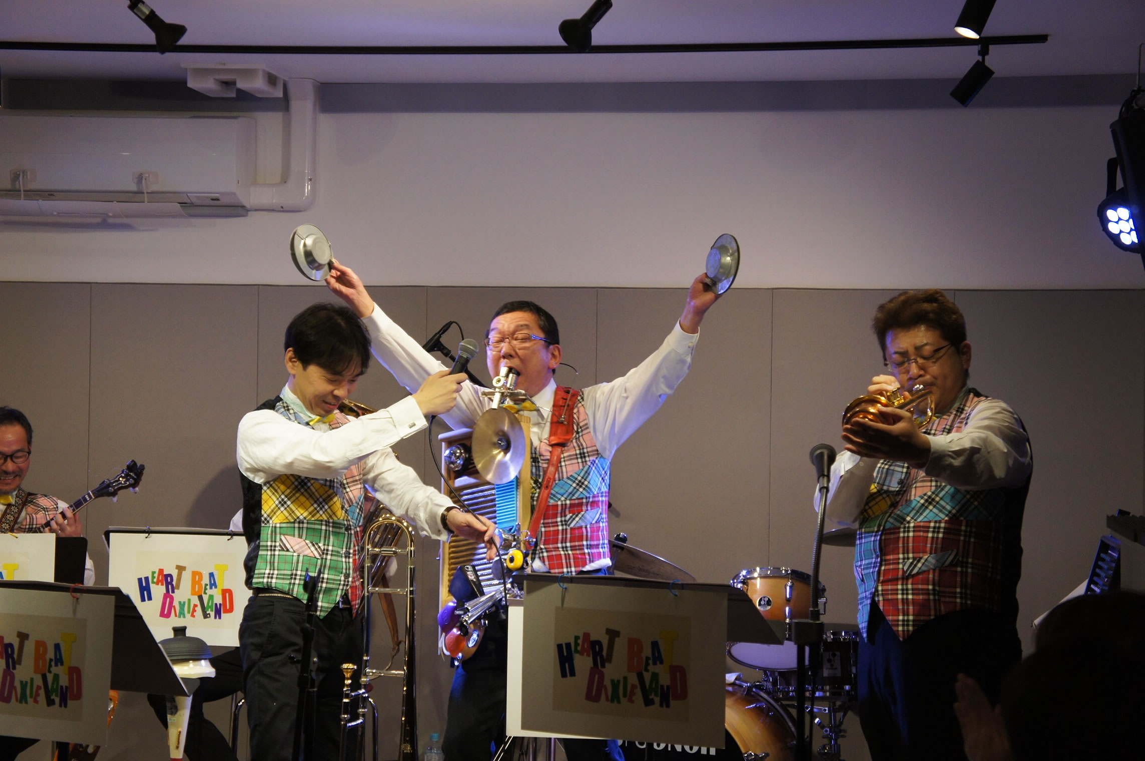 HEART BEAT DIXIELAND 大島一郎(Tb ) 菊池寿人(Cor)岩田直樹(Cl) 藤井信之(Tenor Banjo / Vo) 片岡耕一(Tuba) 森山和弘(Dr / Washboard)