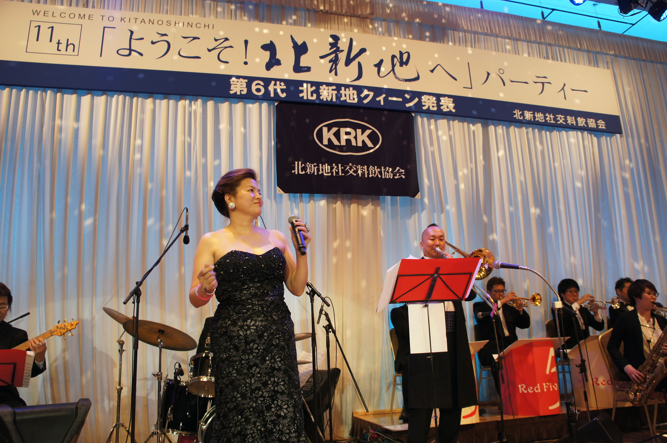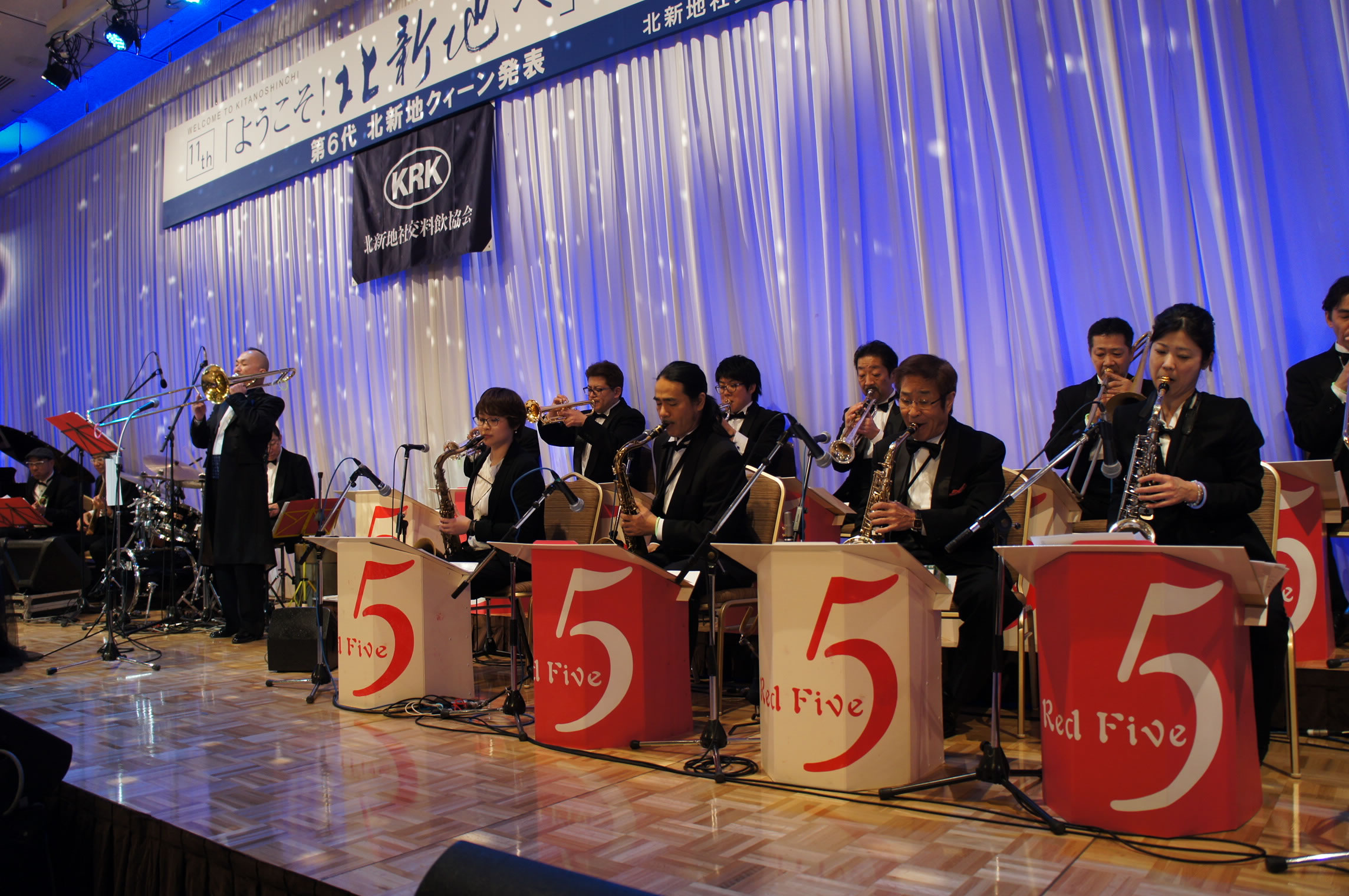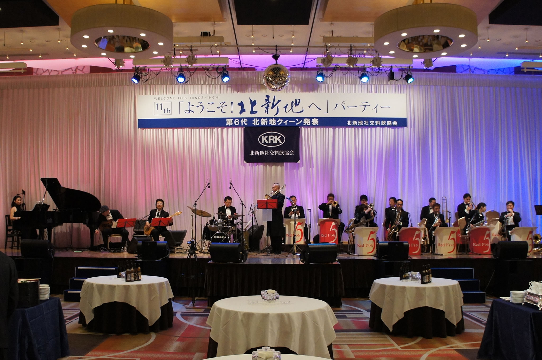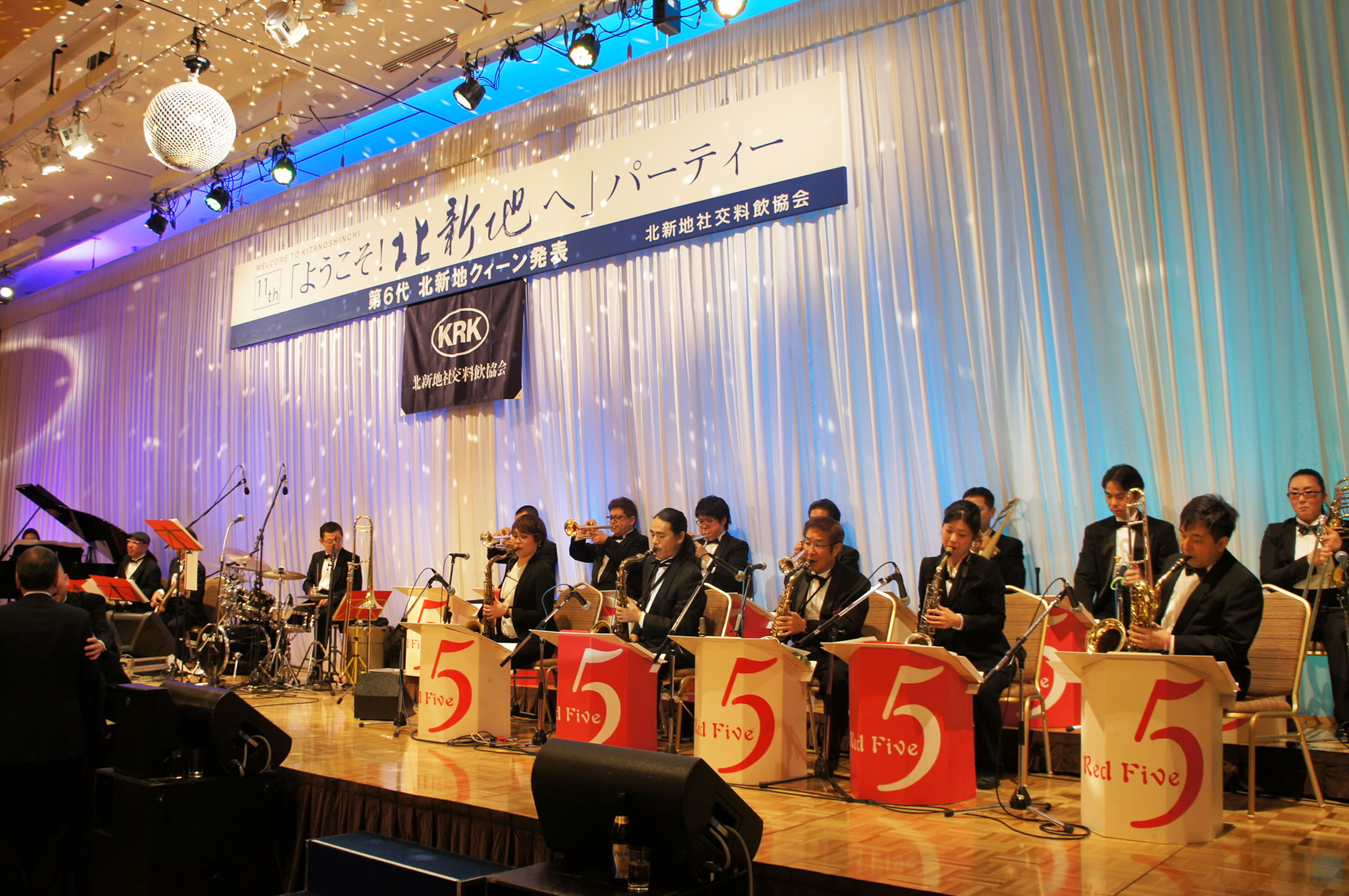 第11回「ようこそ!北新地へ」パーティー、 会場は超満員のお客様!「レッドファイヴジャズオーケストラ」の演奏で盛り上がりました。