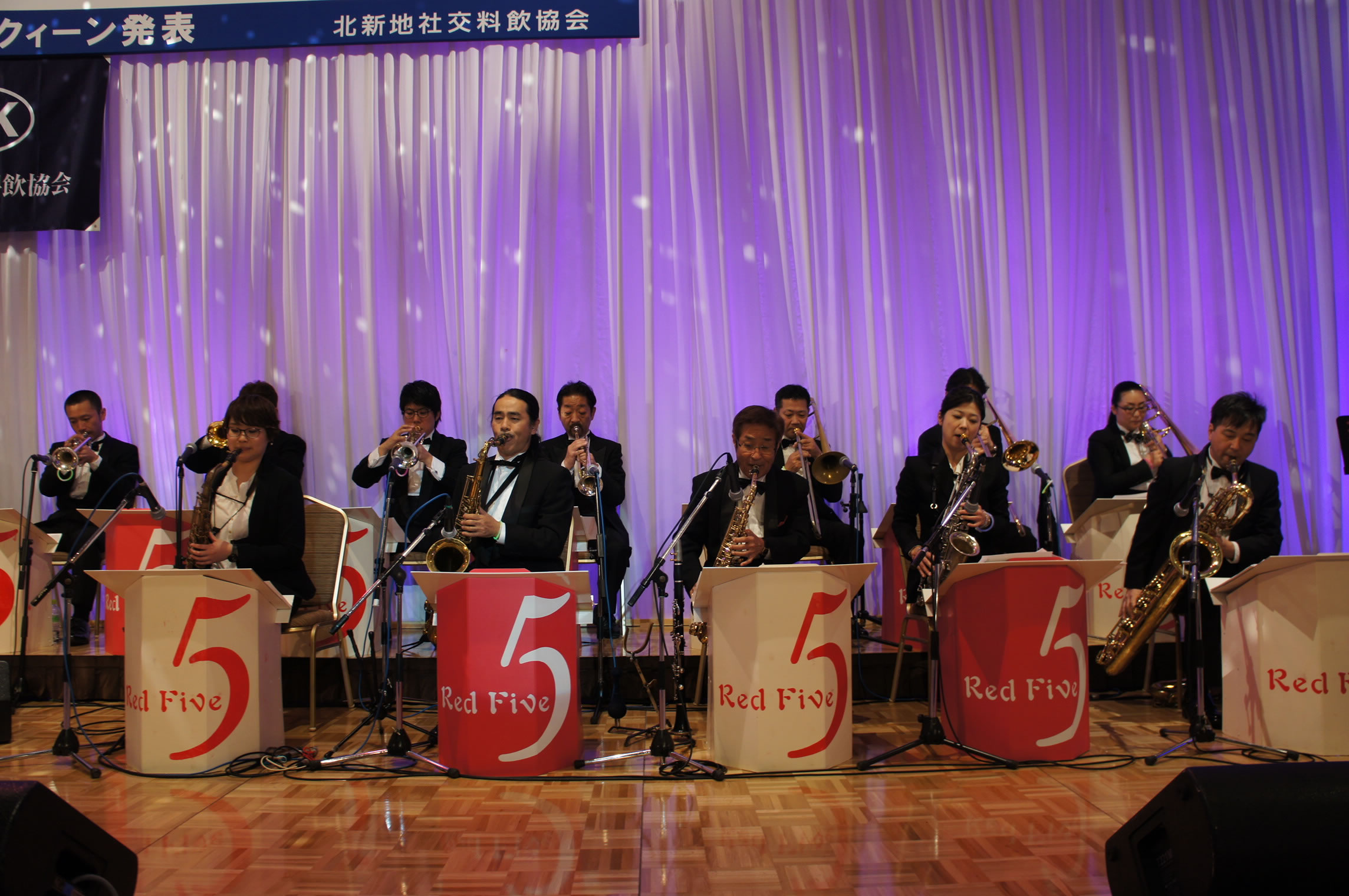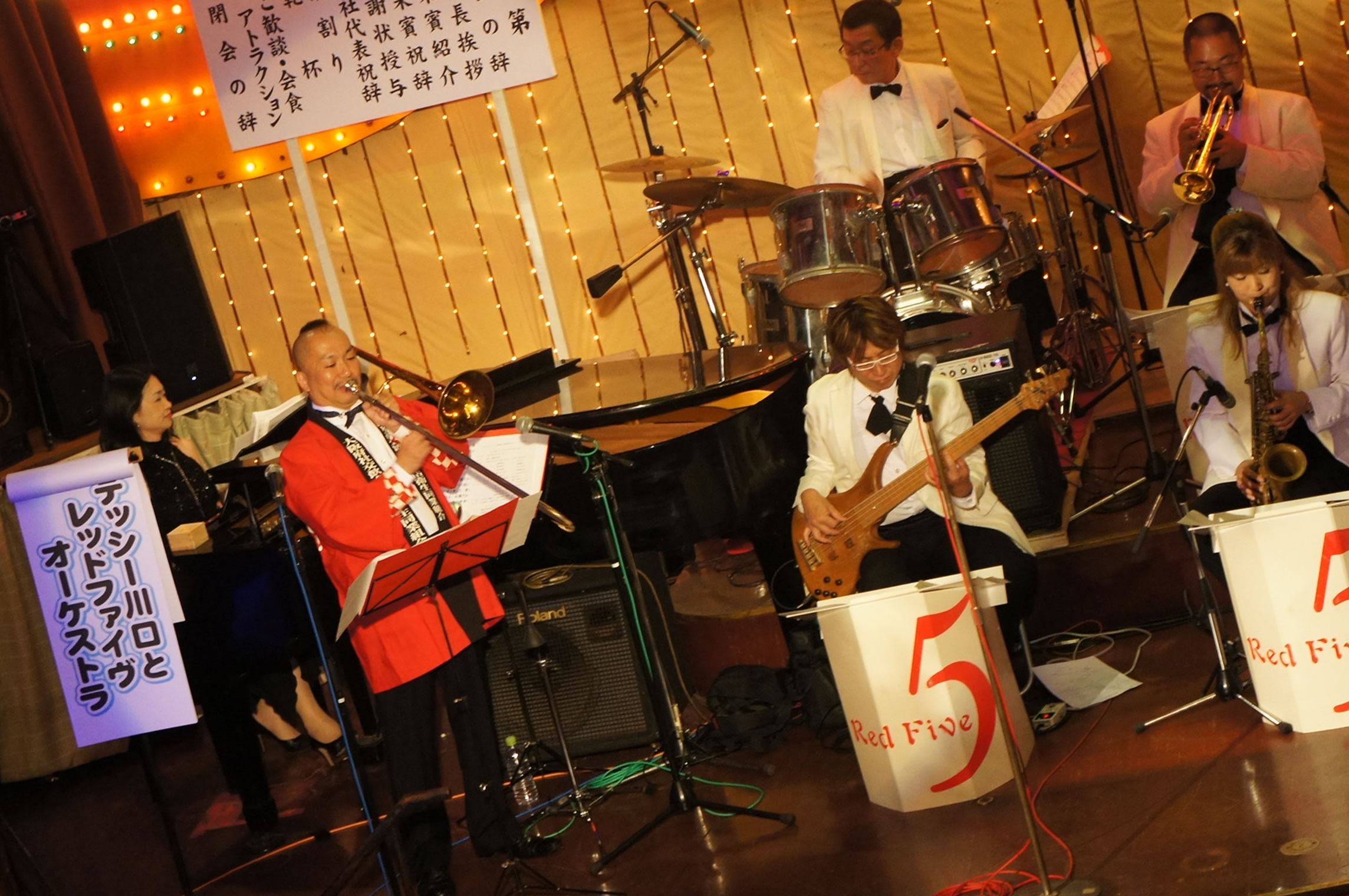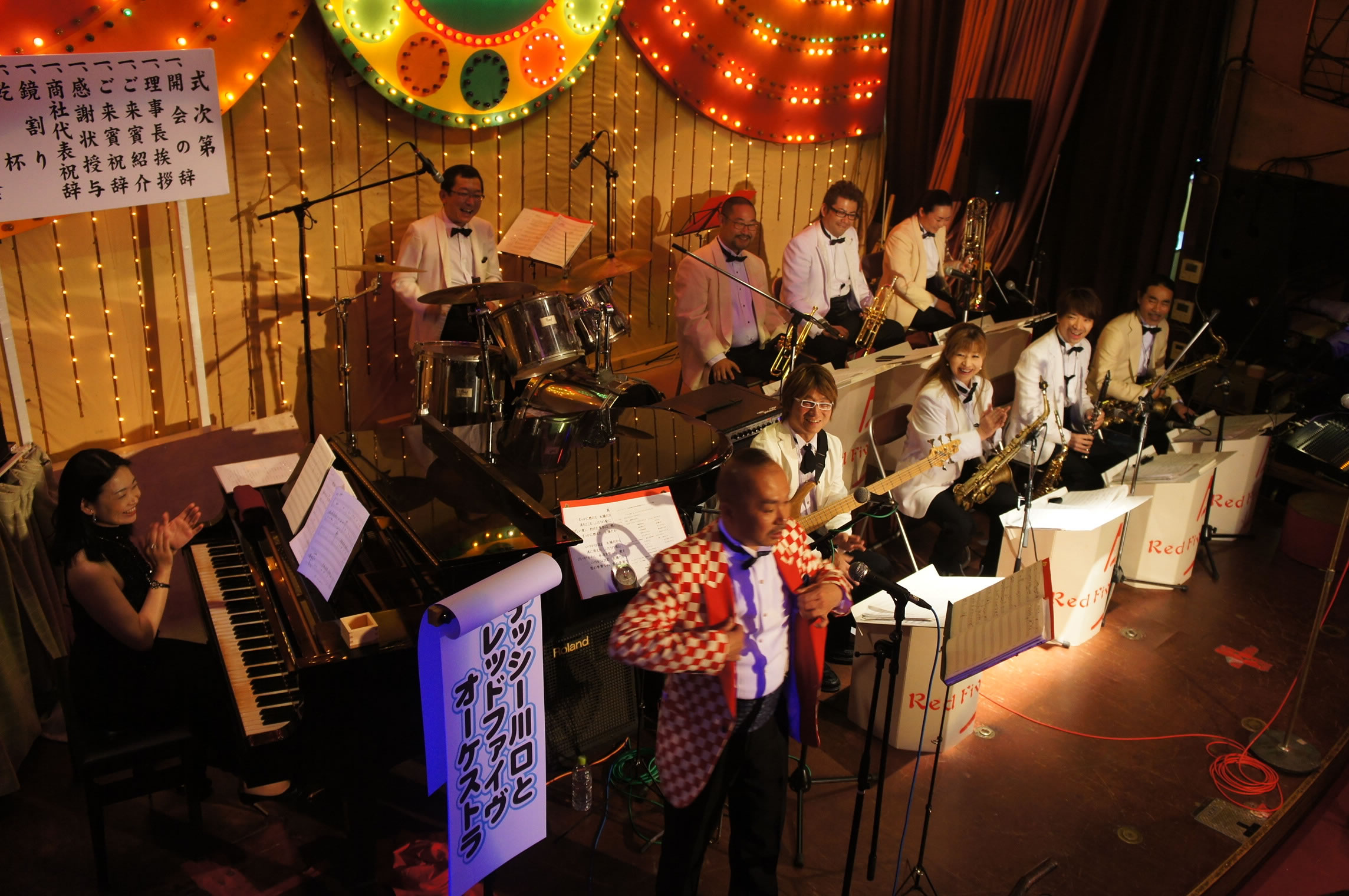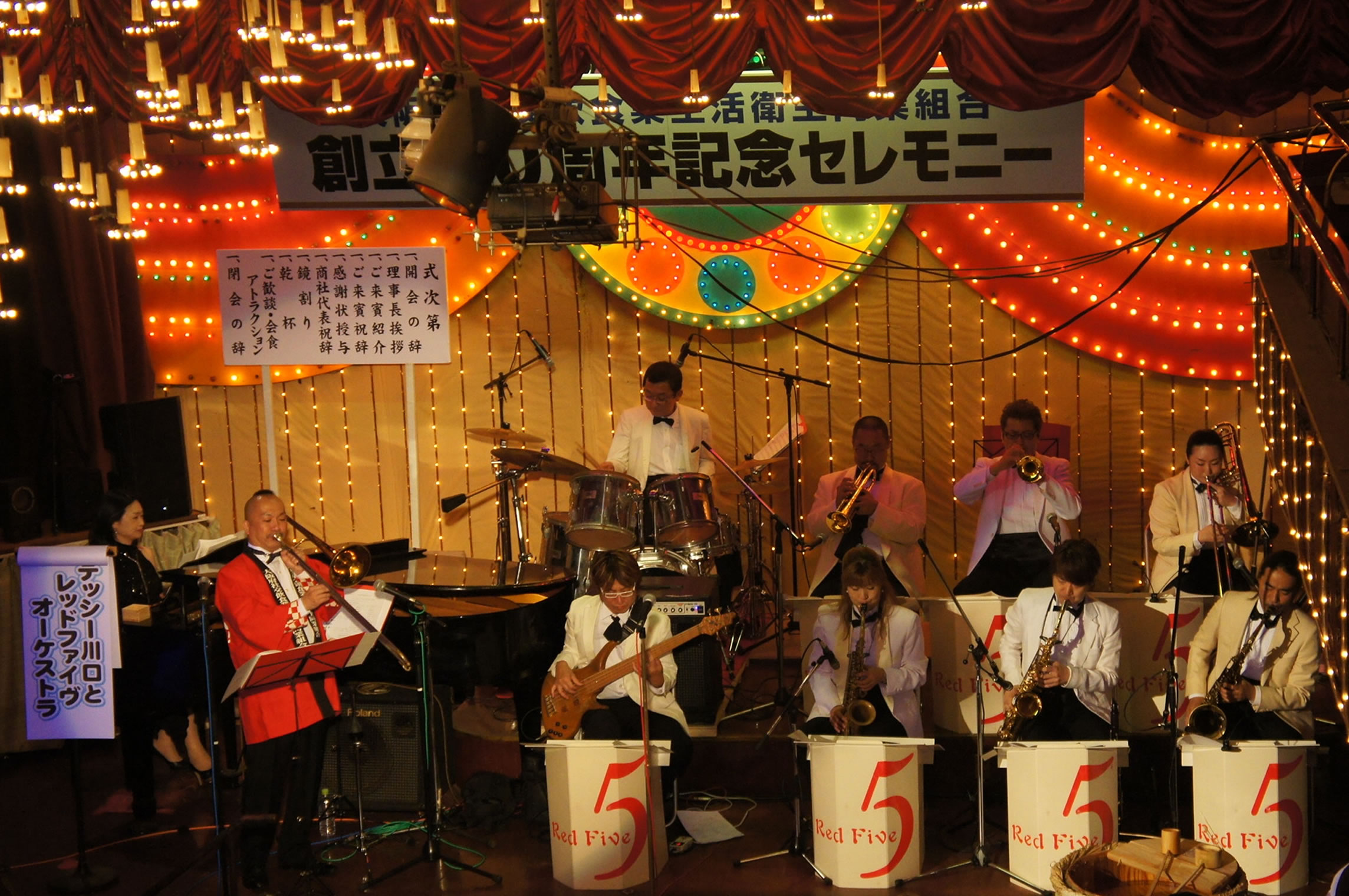 第11回「ようこそ!北新地へ」パーティー、 会場は超満員のお客様!「レッドファイヴジャズオーケストラ」の演奏で盛り上がりました。