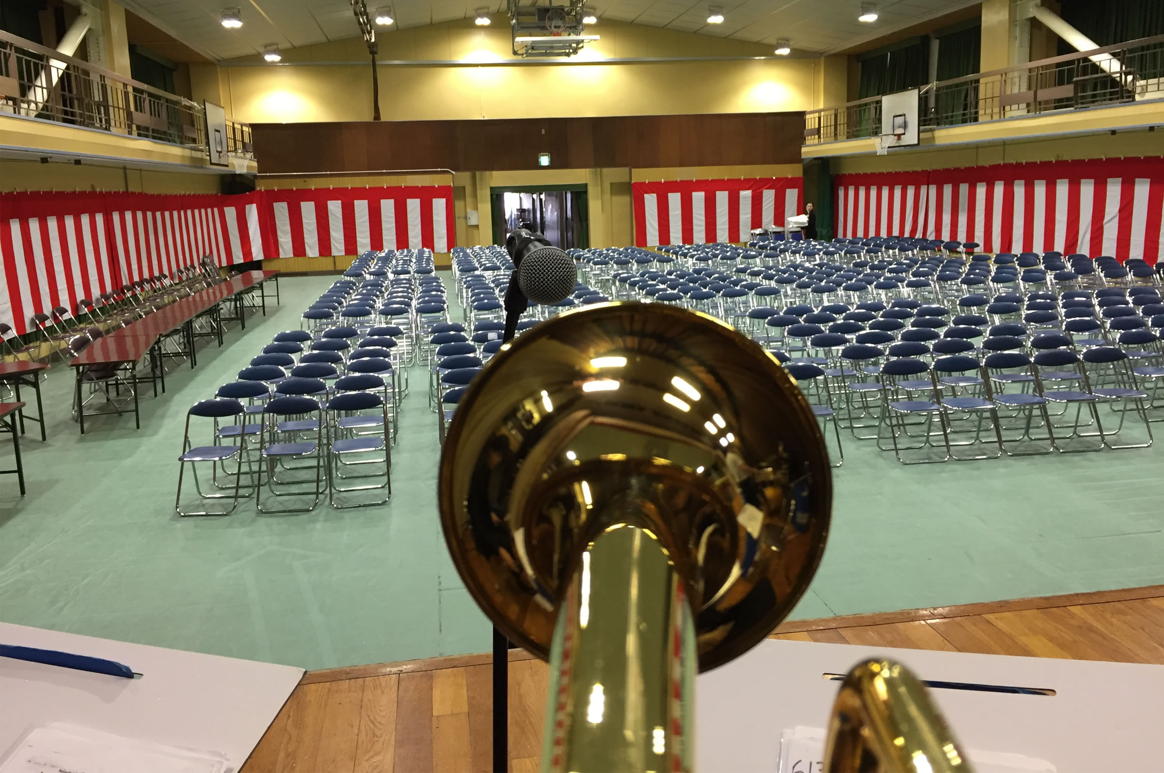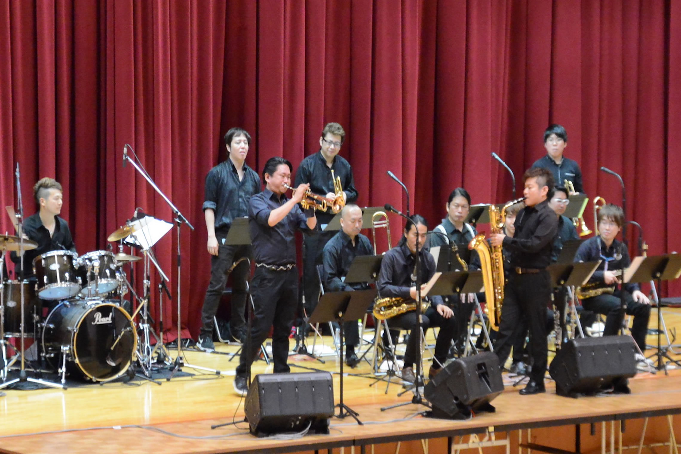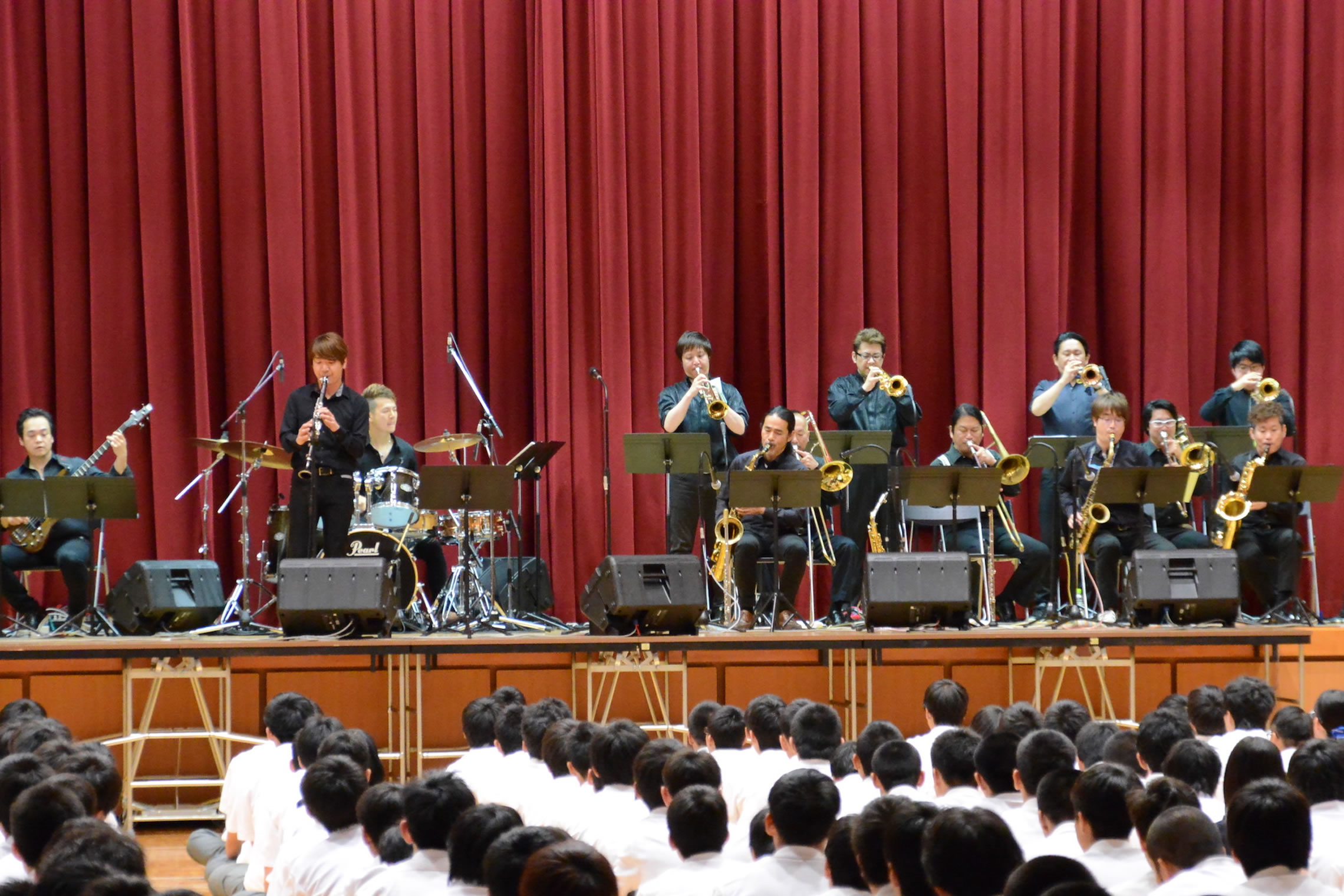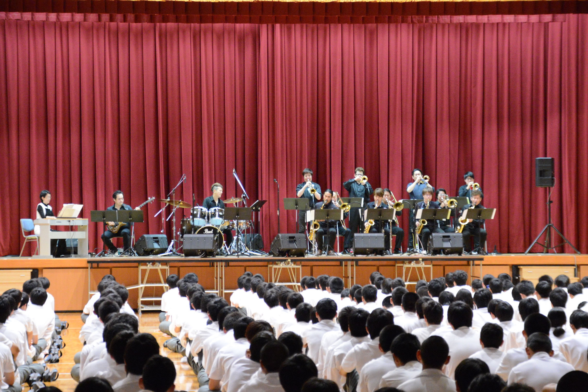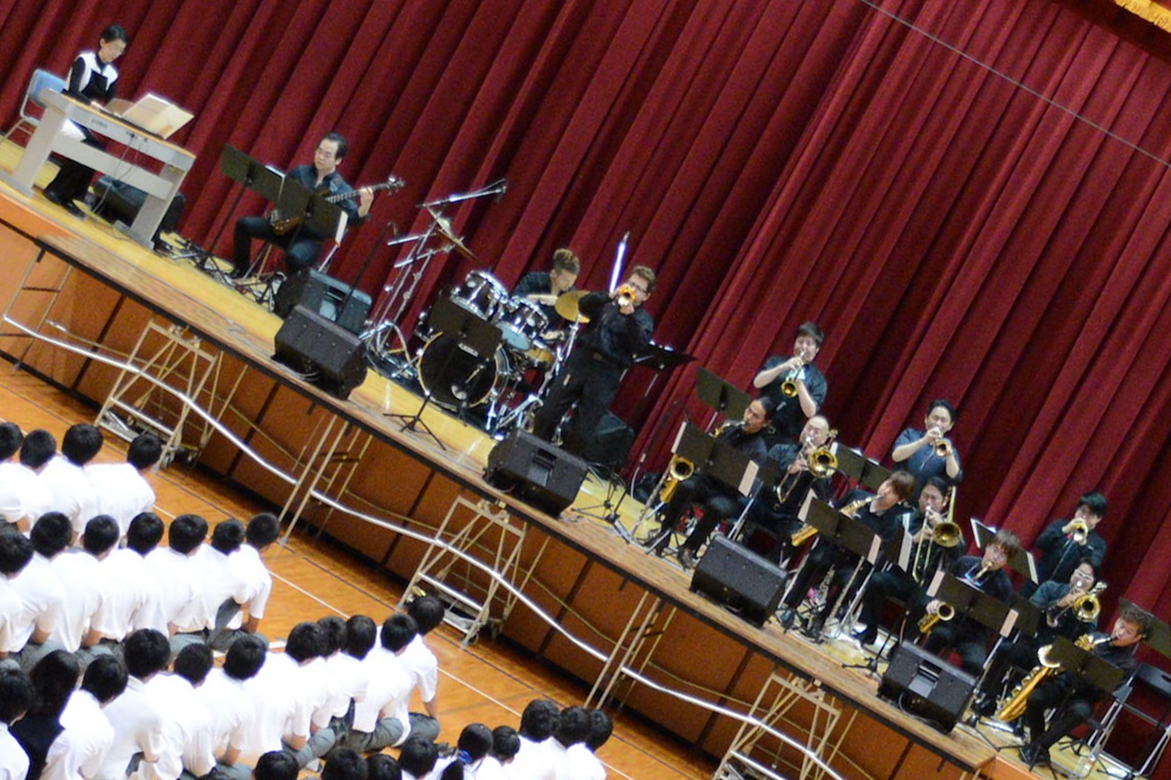 島根県松江市内での学校公演、とても大きな体育館でのコンサートでした。 The Symphony Hall Big Band ならではのプログラム、ど派手な演奏で生徒さんにも喜んで頂きました。 ご依頼頂いた学校関係者の皆さま、NMGの三輪さんはじめ音響スタッフの皆さま、 そしてメンバーのみんな、全ての方々に感謝です。どうも有り難うございました。