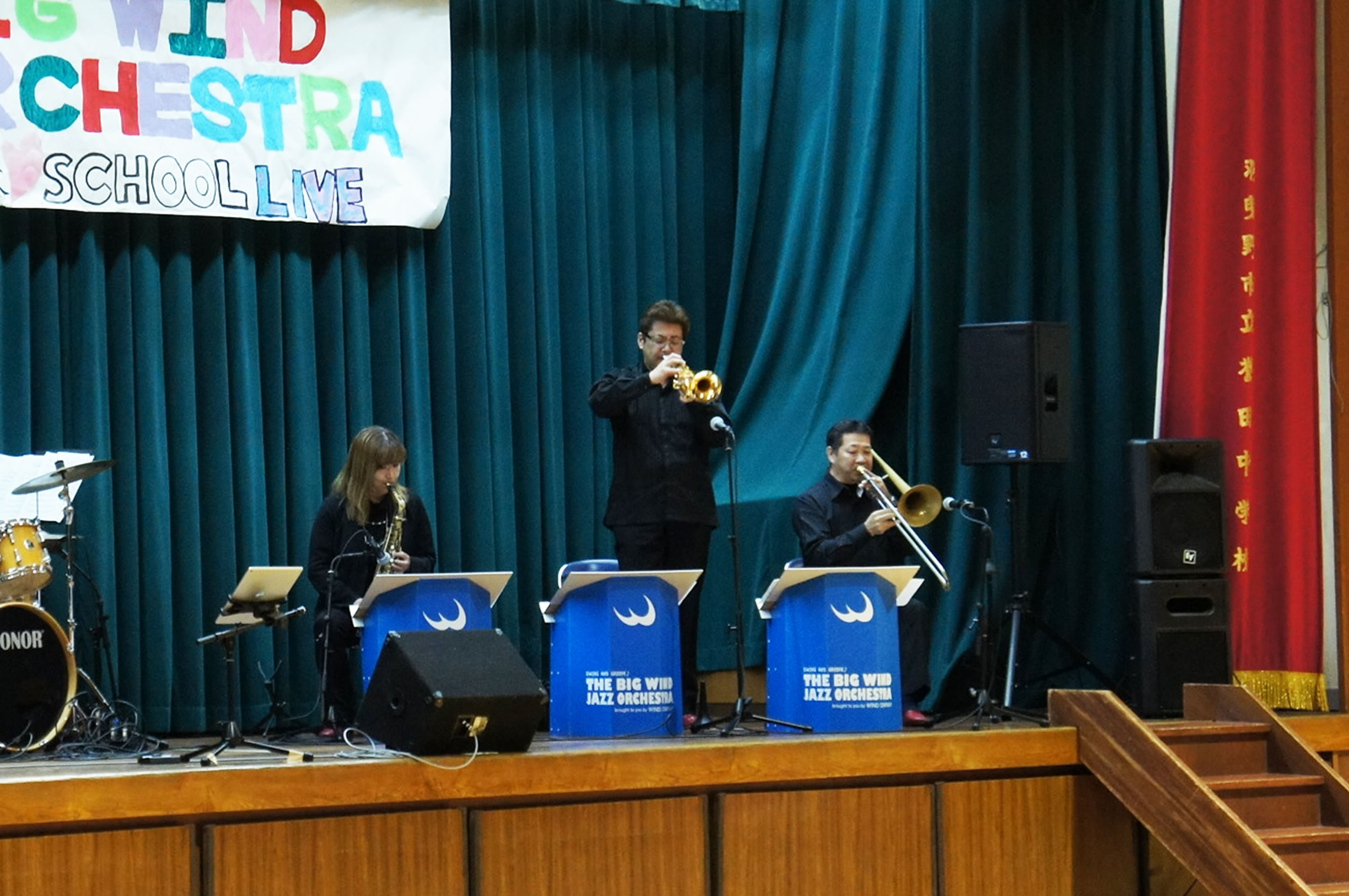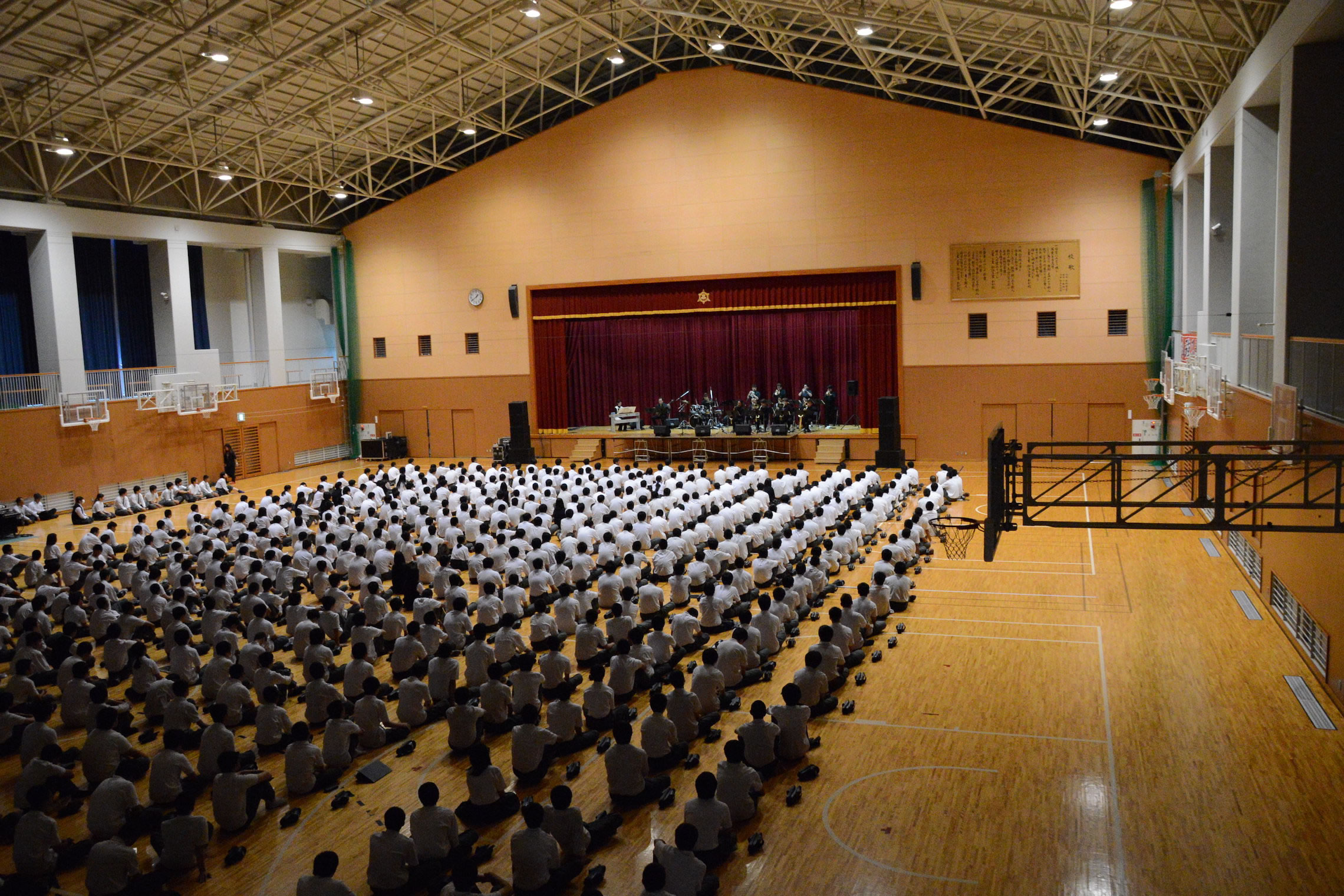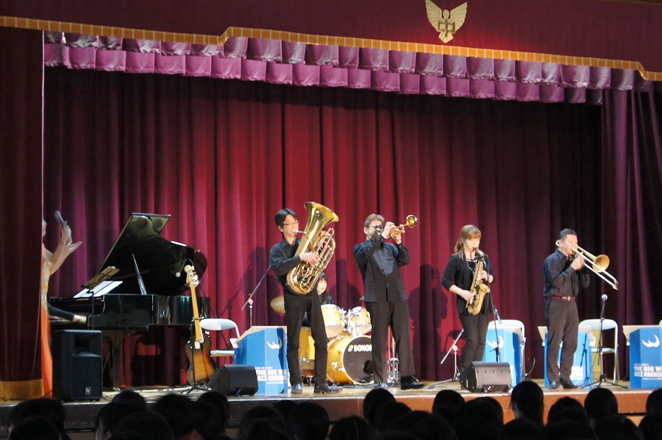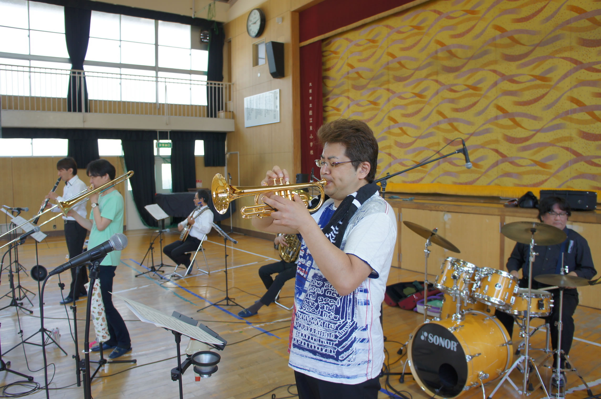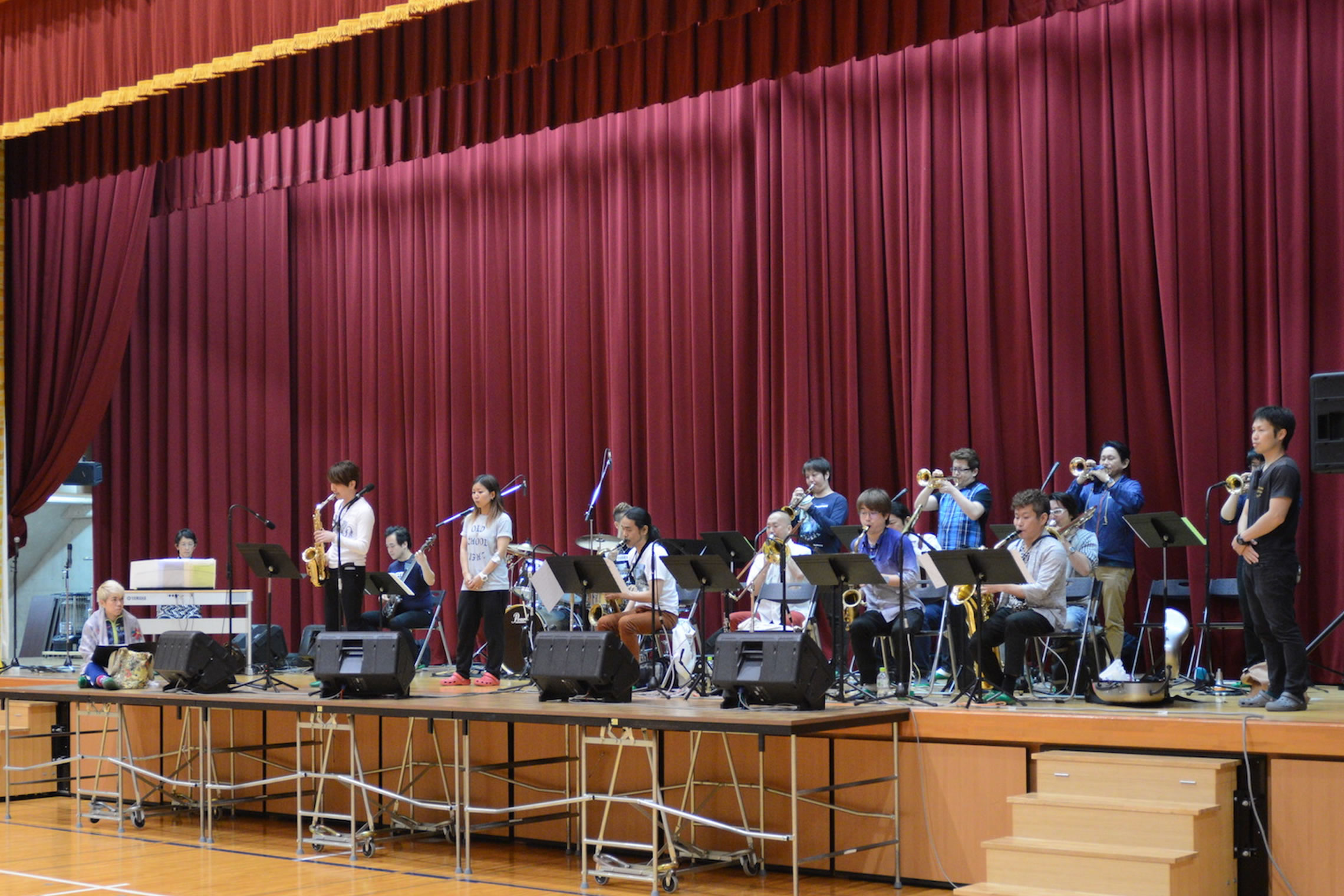 島根県松江市内での学校公演、とても大きな体育館でのコンサートでした。 The Symphony Hall Big Band ならではのプログラム、ど派手な演奏で生徒さんにも喜んで頂きました。 ご依頼頂いた学校関係者の皆さま、NMGの三輪さんはじめ音響スタッフの皆さま、 そしてメンバーのみんな、全ての方々に感謝です。どうも有り難うございました。