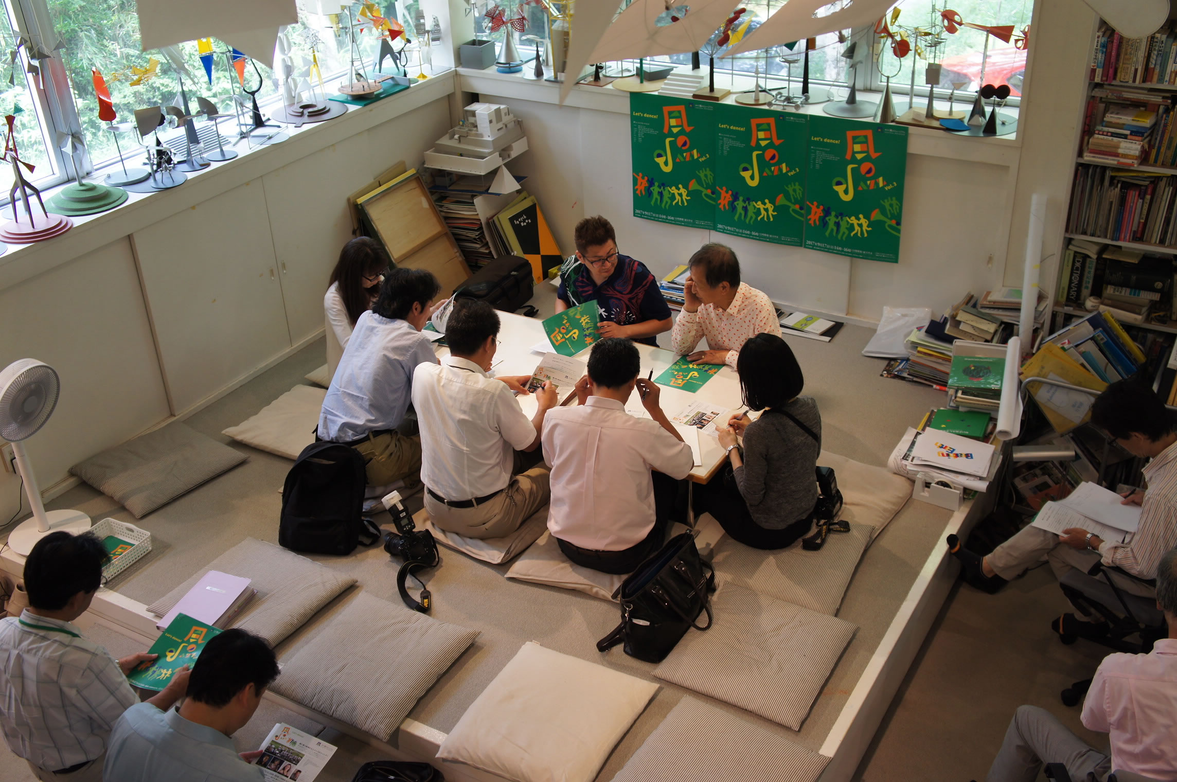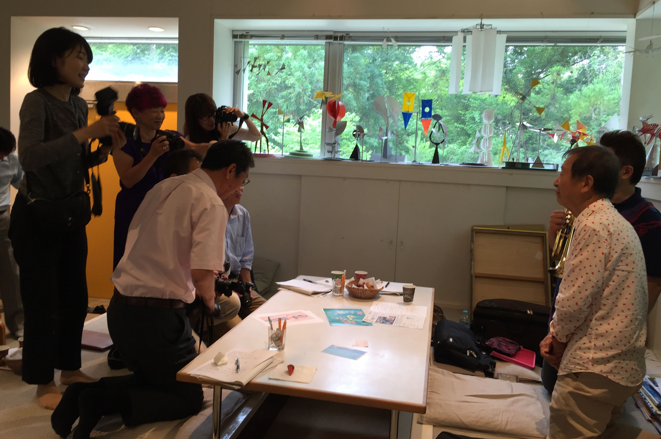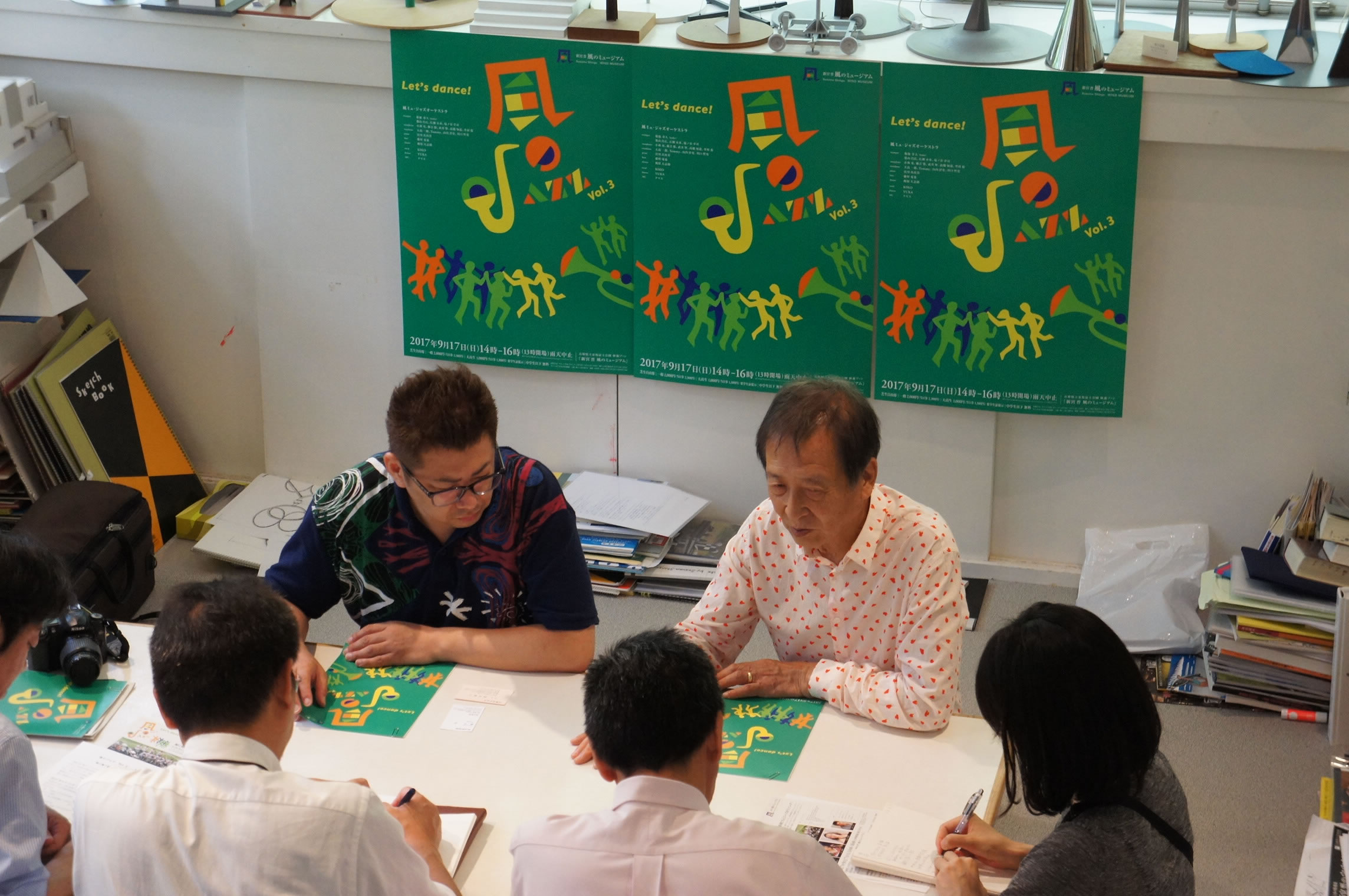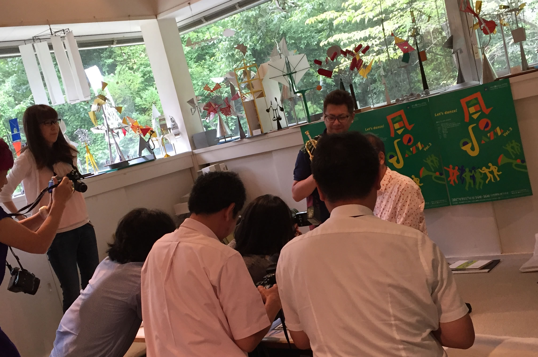 早朝より三田へ!新宮晋先生のアトリエにて9月17日開催の「風のJazz Vol.3」新聞各紙の記者発表でした。