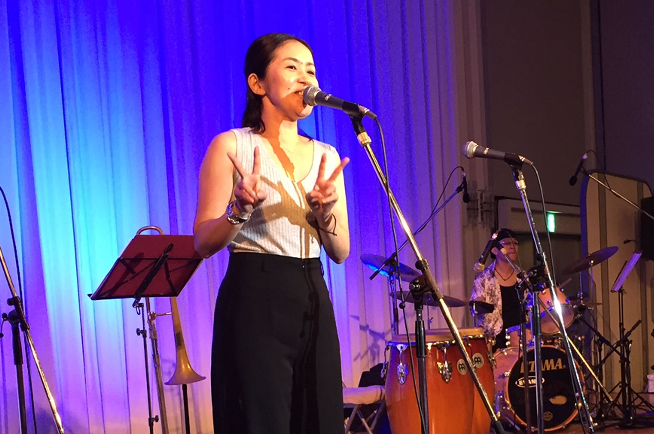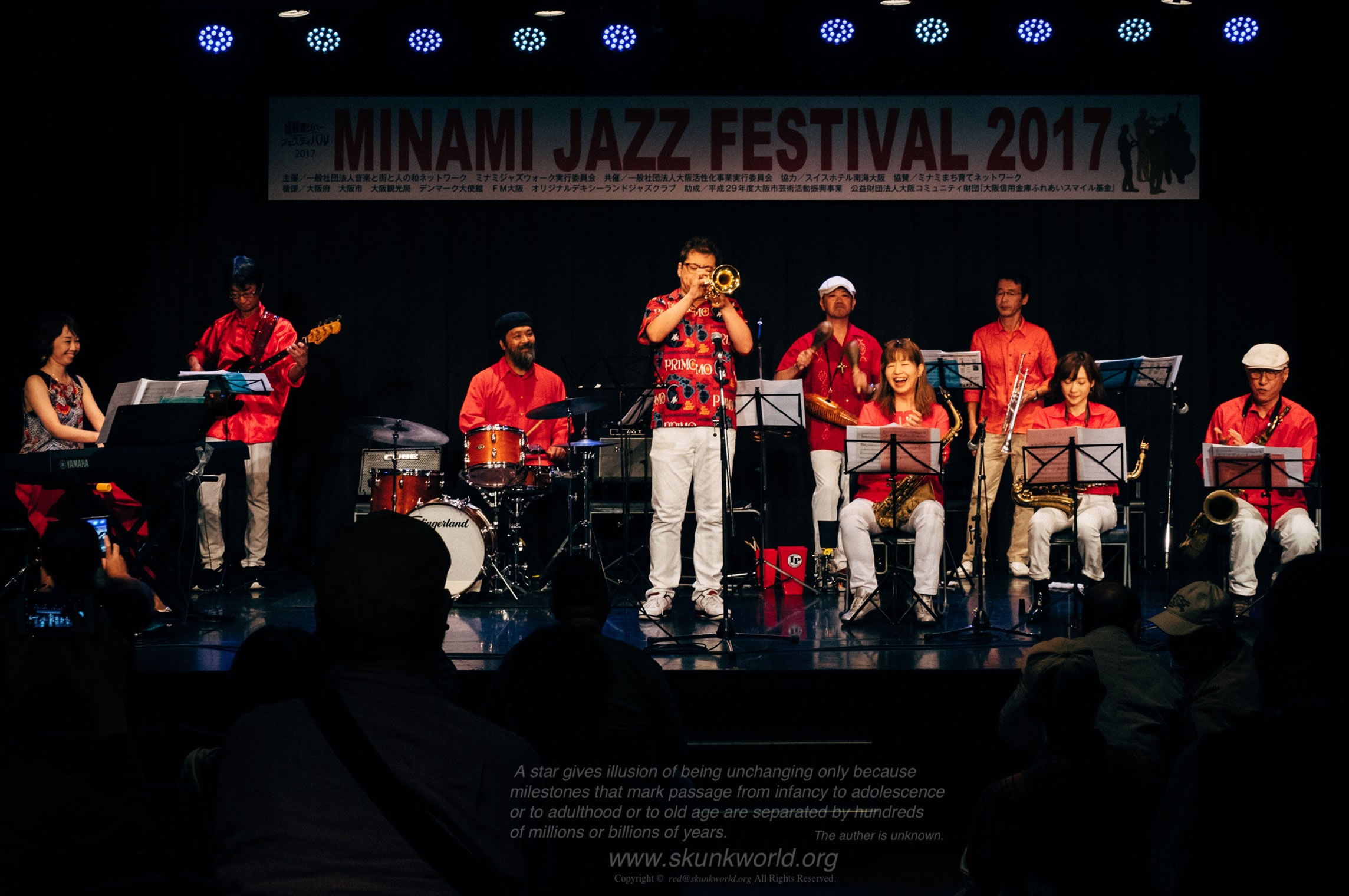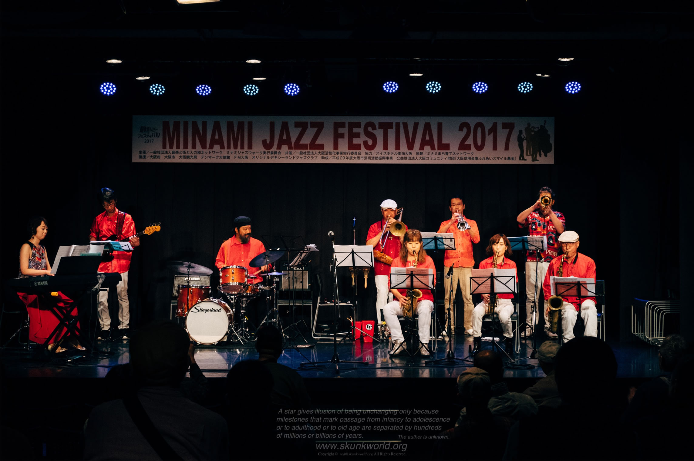 本日はミナミジャズフェスティバル2017に出演しました。昨日、今日とハートビートで出演予定だった湊街リバープレイスでの開催は台風の為、残念ながら中止。 道頓堀川面舞台で予定だった公演は道頓堀ZAZA HOUSEに場所を移して開催されました。 こちらに、ラテンユニットMoriedcafeで参加させて頂きました。駆け出しの頃からお世話になっている先輩方、学校で教えていた生徒、そしていつもご一緒させて頂いてる仲間達と幅広い年齢層のバンド!! 演奏時間はあっという間でしたが楽しい一時を過ごしました。 この暴風雨の中残って聞いて頂いた沢山のお客様と大盛り上がりでした。 どうも有り難うございました!!
