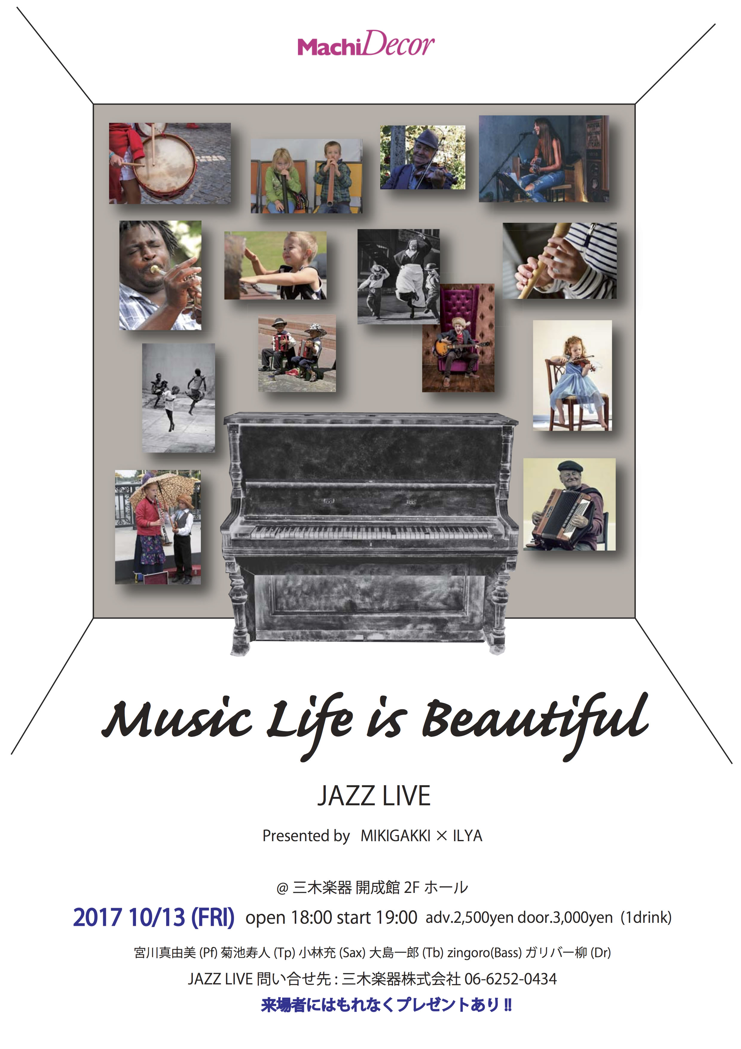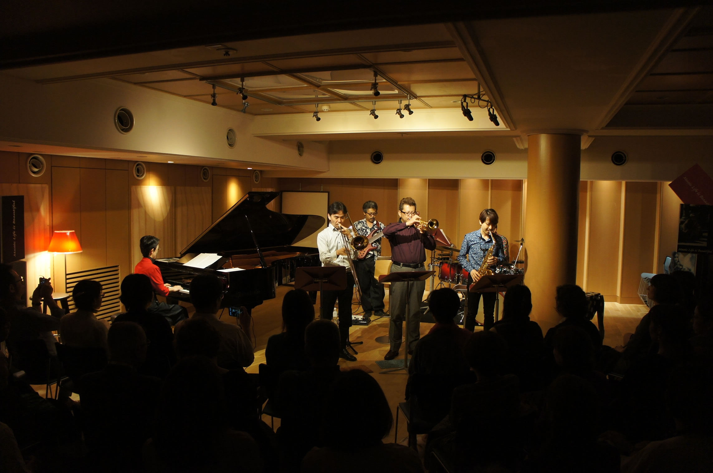 "Music Life is Beautiful " JAZZ LIVE 、たくさんのお客様に起こし頂きまして有り難うございました。 三木楽器とイリアとのコラボレーション企画で、会場にはオシャレな椅子、様々なインテリアオブジェ、そしてなんと2000万以上もするベーゼンドルファーのピアノが用意されピアノを中心に様々なシーンを演出!!