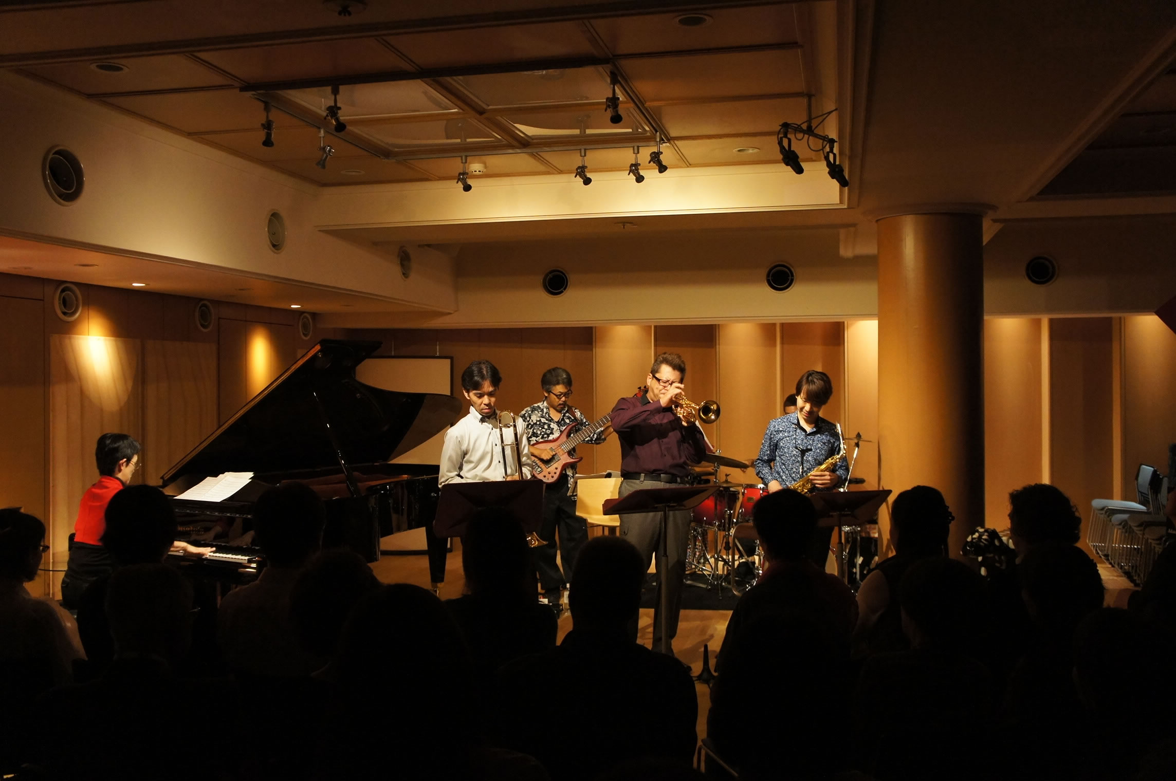 一部はピアノソロ、ピアノトリオ等々!! 二部で我々ホーンセクションも加わってセクステットでの演奏!! お馴染みの超スタンダード曲も5拍子や7拍子のアレンジでなかなかのプログラム構成でした。(^^) 三木楽器スタッフの皆さま、素敵な企画を有り難うございました。