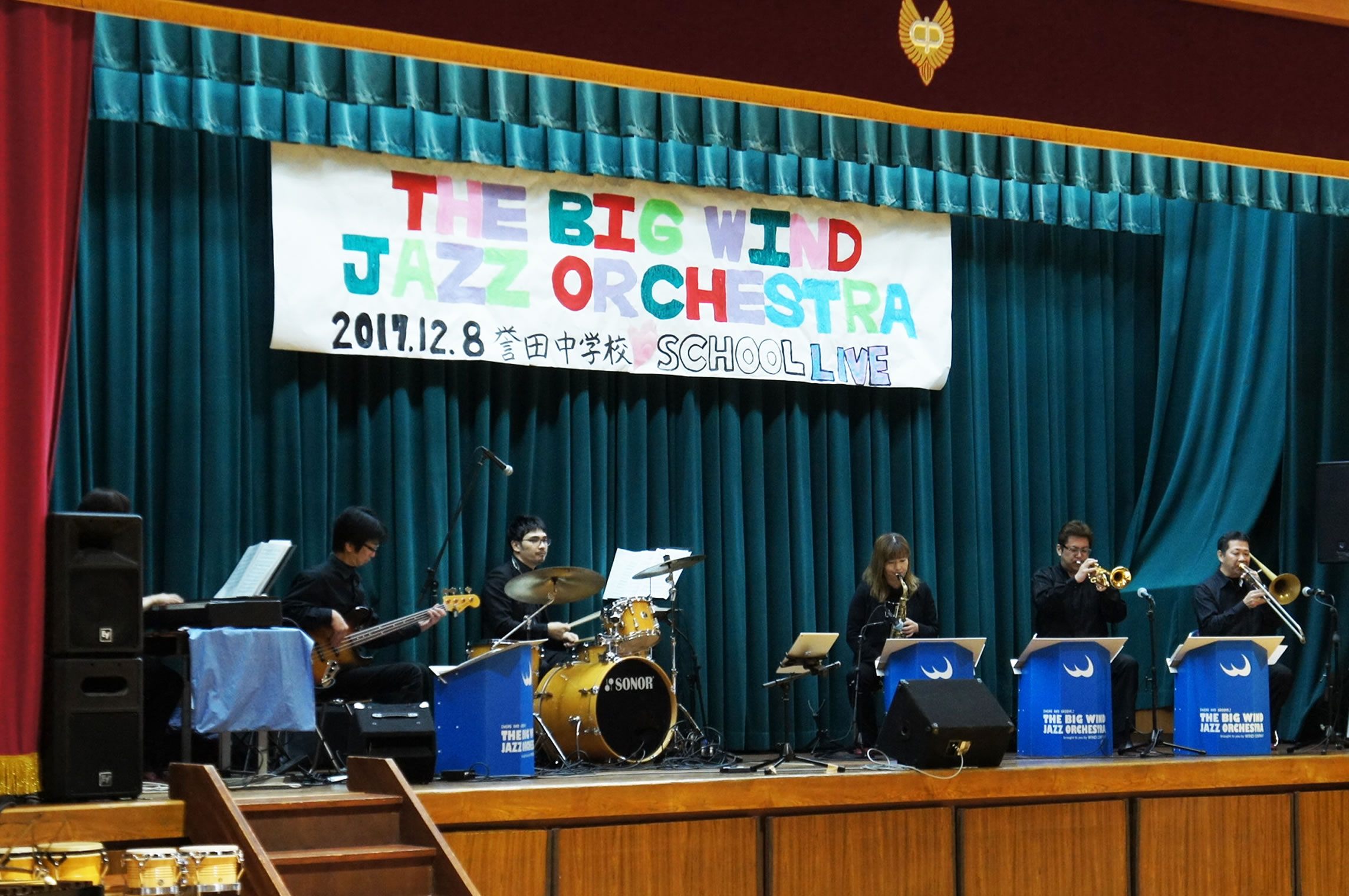 本日の学校公演、中学生ビッグバンドとのコラボも有り会場もノリノリで盛り上がりました!寒さも吹き飛びますね!!