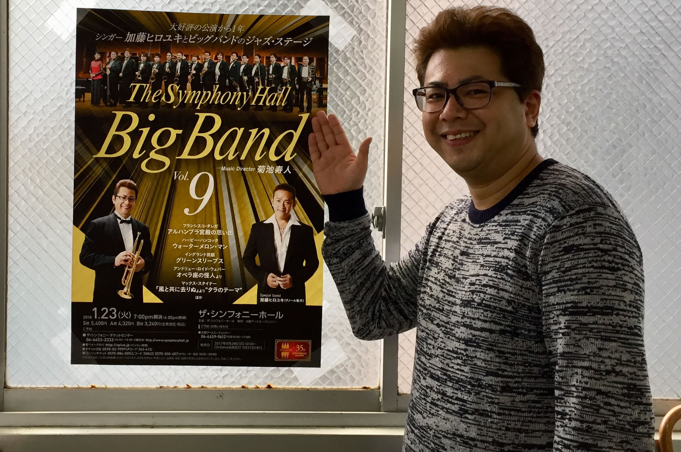 ザ・シンフォニーホールビッグバンドVol.4コンサート終了致しました。本日もたくさんのお客様にご来場頂き誠に有難うございました。 このバンド初のボーカルゲスト加藤ヒロユキさんをお迎えしてのコンサート、管楽アンサンブル的な要素も今回はふんだんに取り入れこのビッグバンドならではの面白さもたくさん出てきました。 アンコールにはパイプオルガンとビッグバンドという斬新な試みも・・・これも中々面白かったですね。 回を重ねる毎に小林氏、広瀬氏のアレンジもメンバーそれぞれの良さを更に強調した素晴らしい作品に仕上がります・・!今後も楽しみです。 ご来場して頂いたお客様、ホールスタッフの皆さま、ゲストの加藤さん、そしていつも素晴らしい演奏をしてくれるバンドメンバーのみんな、全ての方々に感謝です! 本当に有り難うございました。