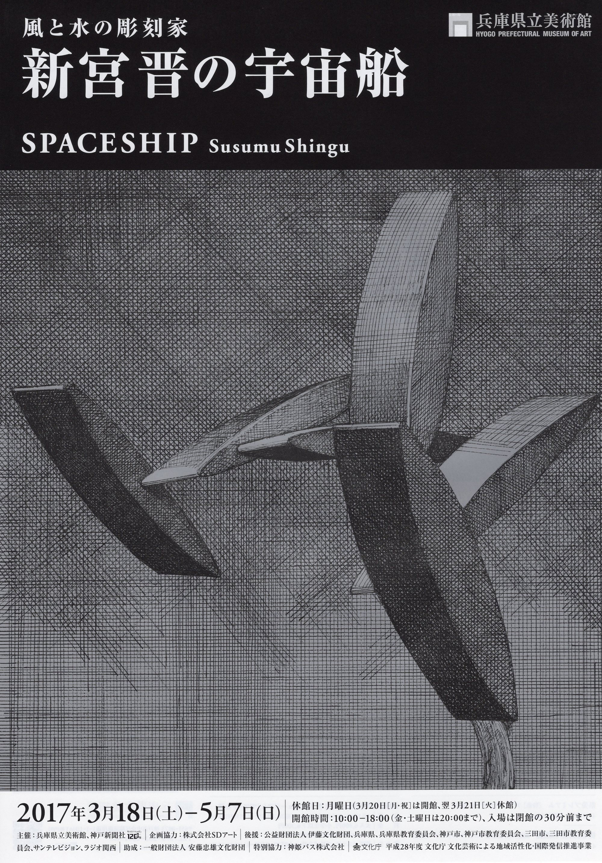 2017年3月18日(土)〜5月7日(日)開催の「新宮 晋の宇宙船」! 前日のオープニング式典で演奏させて頂きます! 新宮先生の新作を中心とする17点の作品で、兵庫県立美術館が宇宙船に変わる…どんな感じなんでしょう! 楽しみです! 皆さんも是非行ってみて下さい!