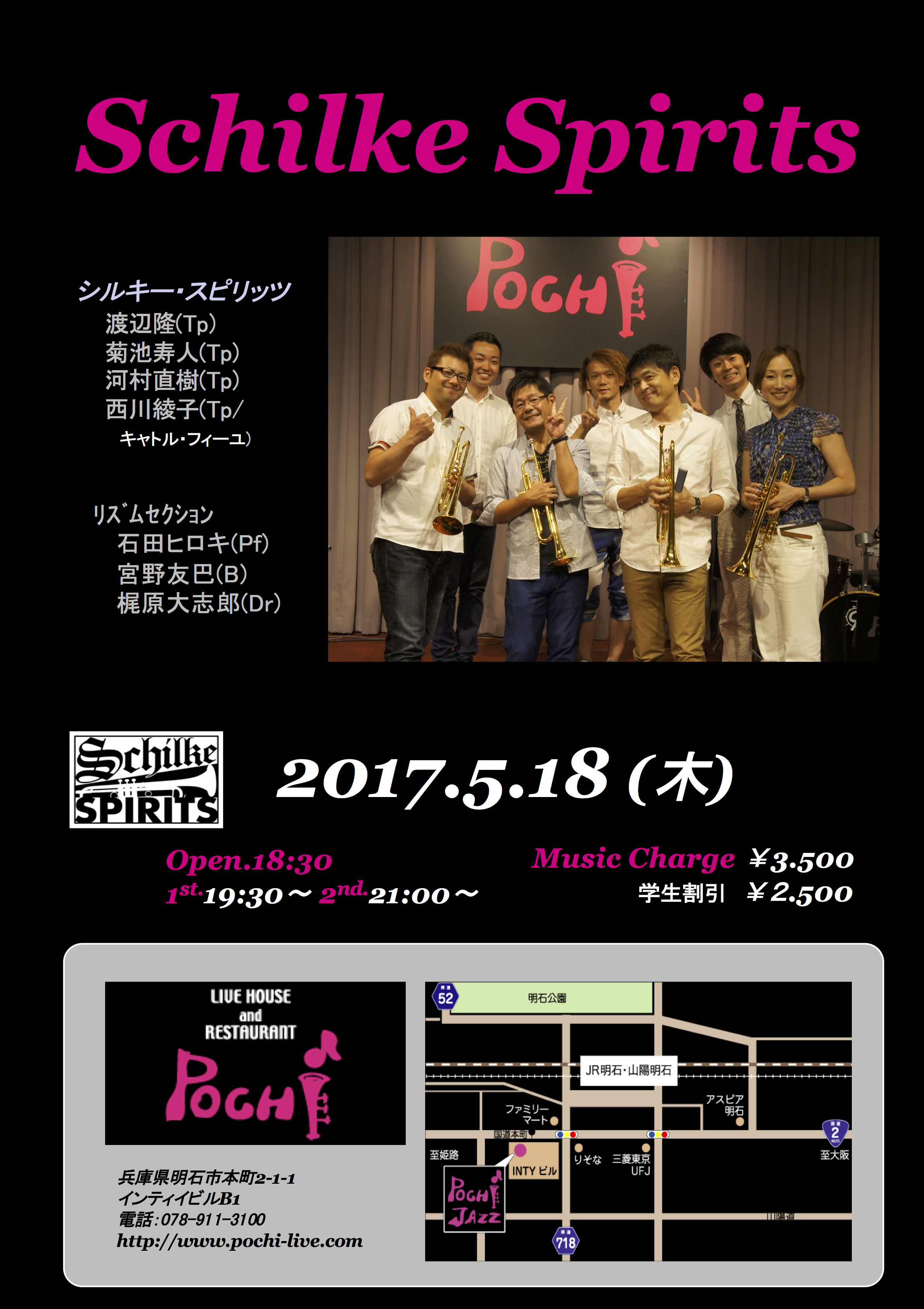 渡辺 隆(Tp)菊池寿人(Tp)河村直樹(Tp)西川綾子(Tp) 石田ヒロキ(Pf)宮野友巴(B)梶原大志郎(Dr)