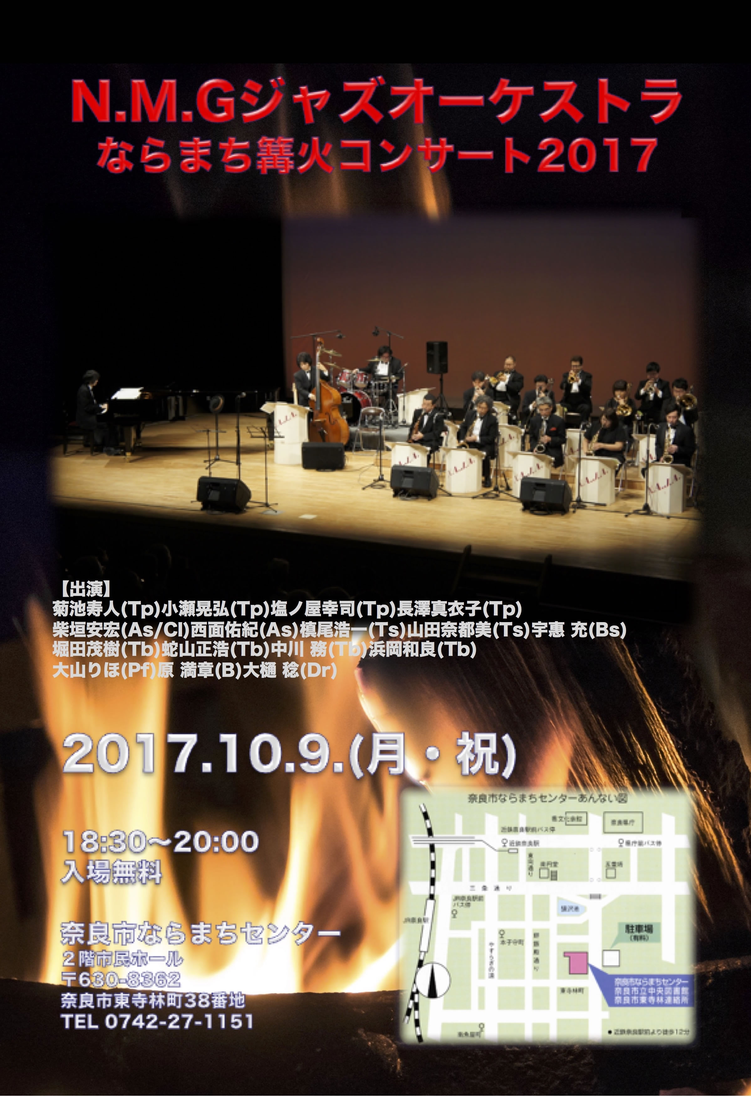 菊池寿人(Leader/Tp)築山昌広(Tp)小林 充(As/Cl)藤吉 悠(As)武井 努(Ts) 大島一郎(Tb)宮川真由美(Pf)石井孝宏(B)梶原大志郎(Dr)