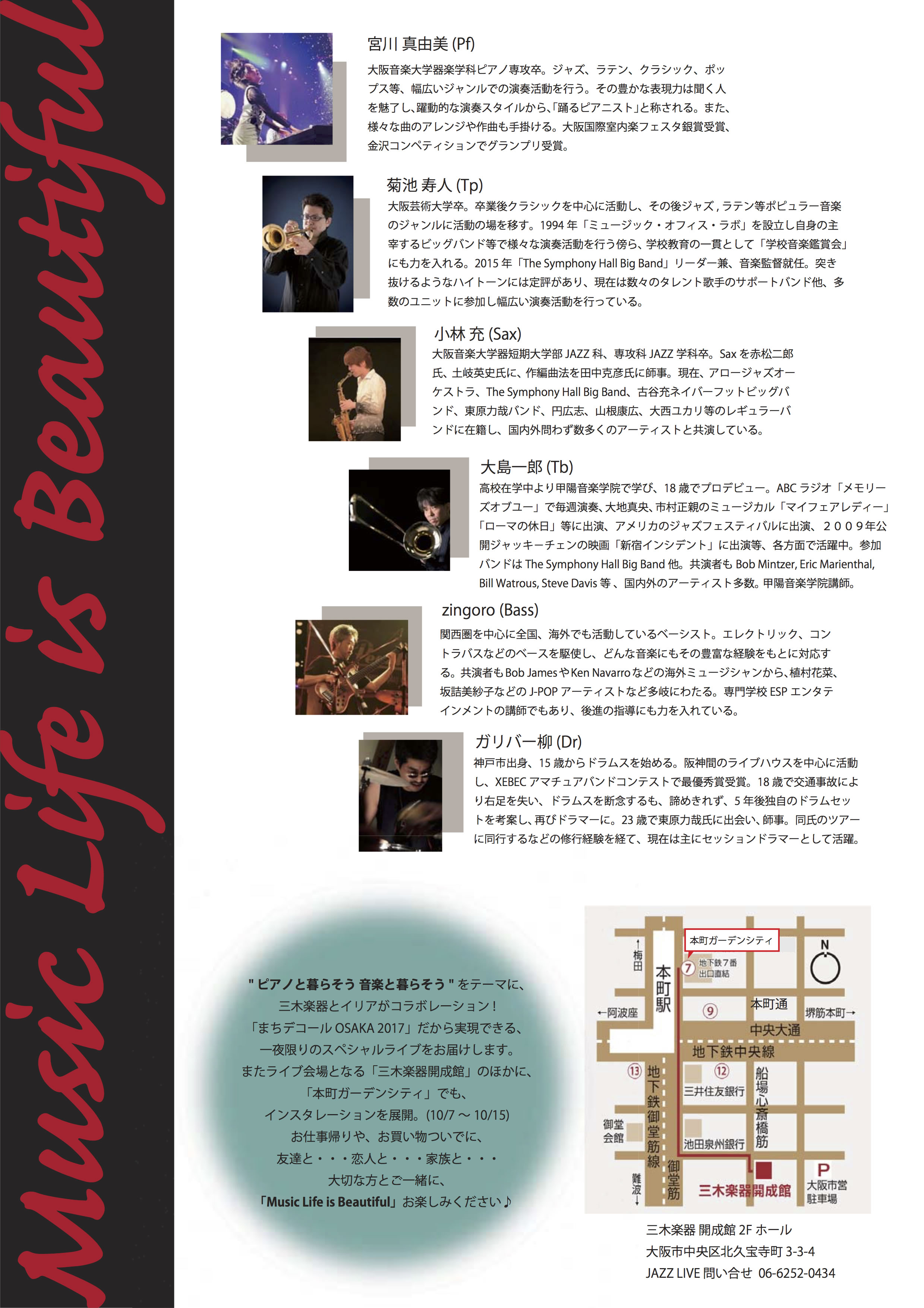 宮川真由美(Pf)藤村竜也(B)岡本健太(Dr)加瀬田 聡(Perc) ●スペシャルゲスト 赤木りえ(Fl)
