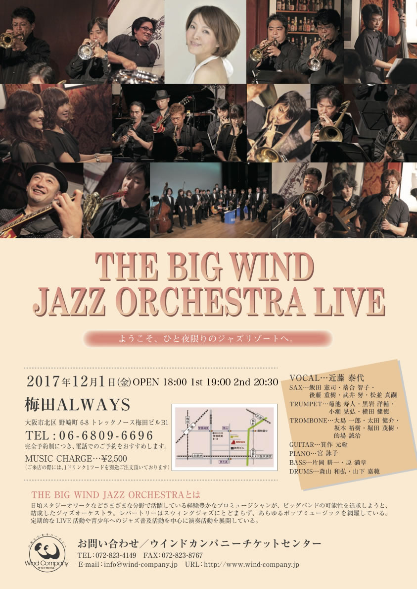堀田茂樹(Tb)大島一郎(Tb)太田健介(Tb)坂本裕樹(Tb)的場誠治(Tb) 宮 詠子(Pf)片岡耕一(B)原 満章(B)箕作元総(Gt)森山和弘(Dr)山下嘉範(Dr)近藤泰代(Vo)